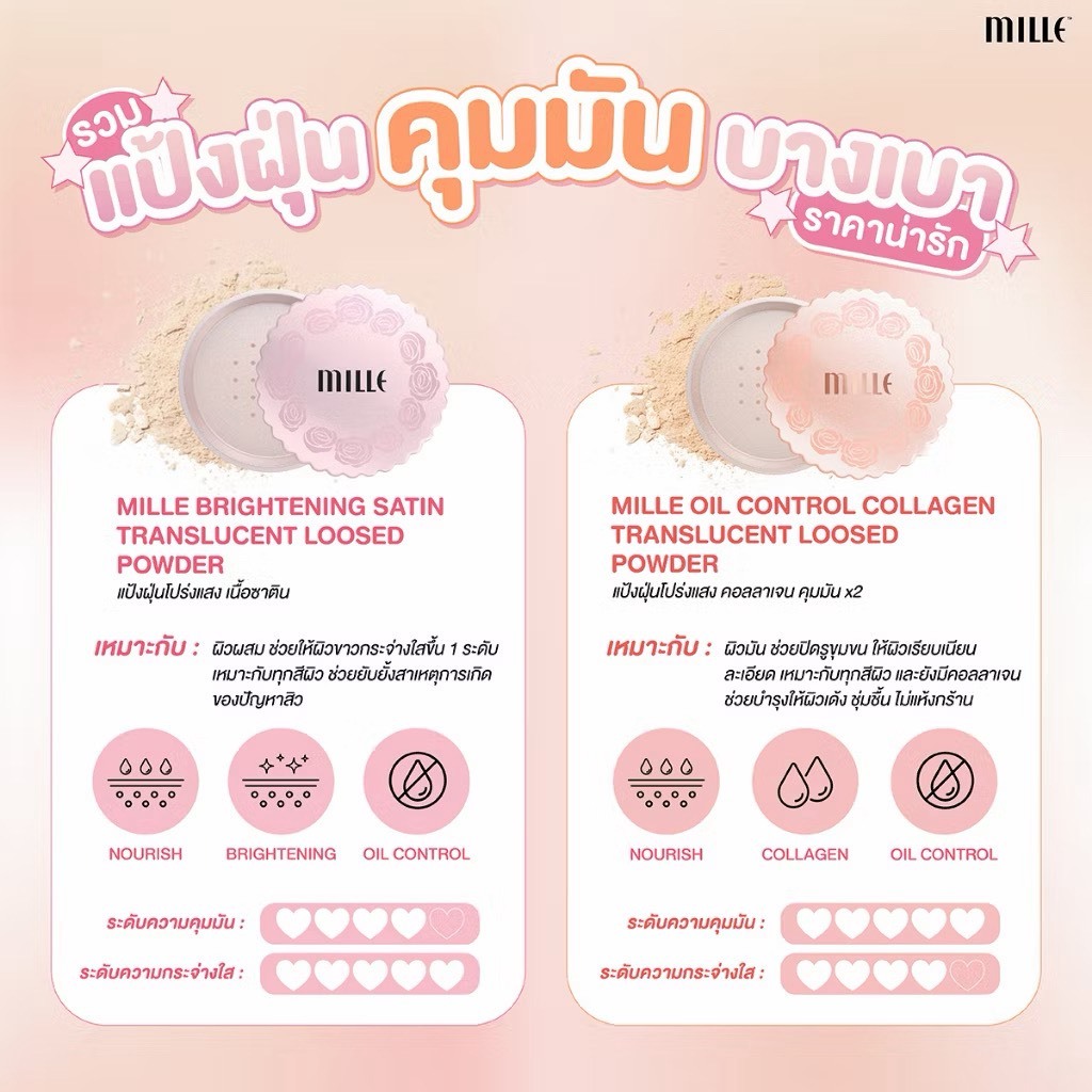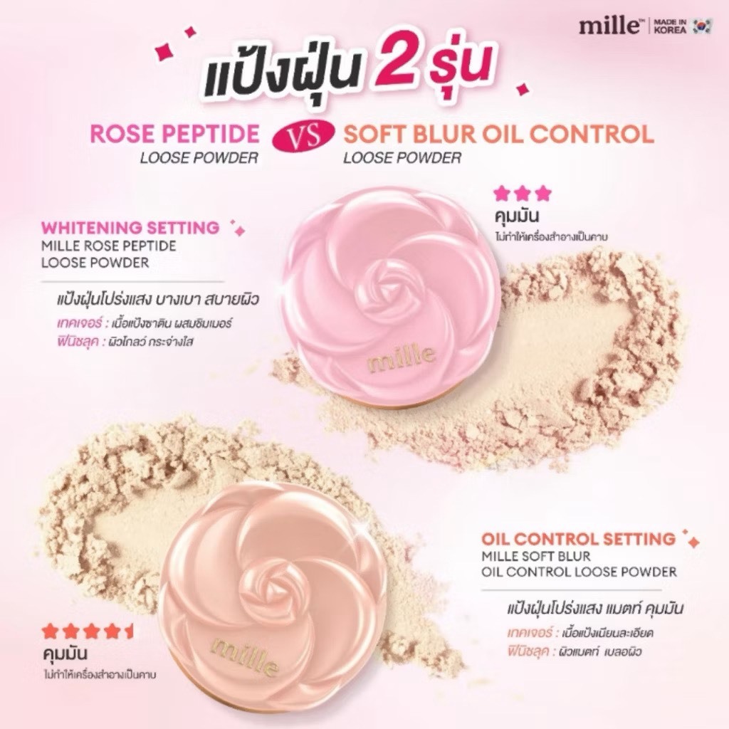 Mille Soft Blur Oil Control Loose Powder 9.5G แป้งฝุ่น ซอฟท์ เบลอ ออยล์ คอนโทรล ลูส พาวเดอร์ / โรสเปปไทด์