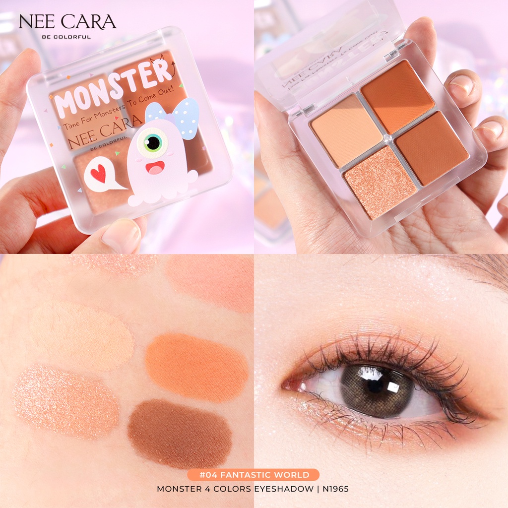 ♦️ของแท้·ส่งด่วน·ถูก♦️Nee Cara Monster 4 Color Eye Shadow #N1965 : neecara นีคาร่า มอนสเตอร์ อายแชโดว์ x 1 ชิ้น dayse