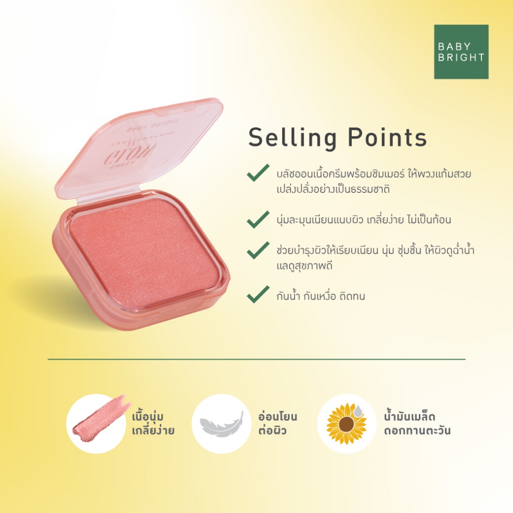 เบบี้ไบร์ท ชีค โกลว์ ซันฟลาวเวอร์ บลัชออน เนื้อครีม Baby Bright Cheek Glow Sunflower Blush 5.2g.