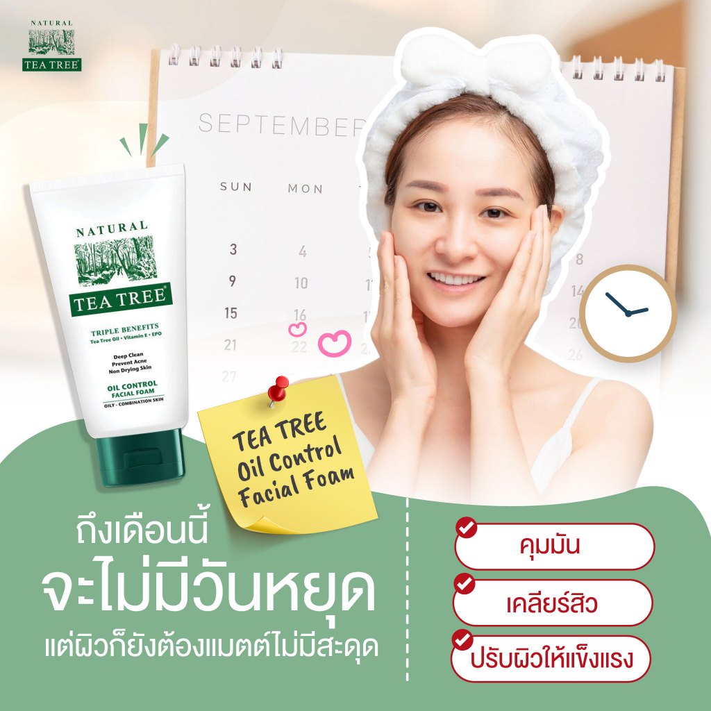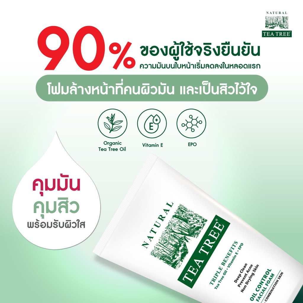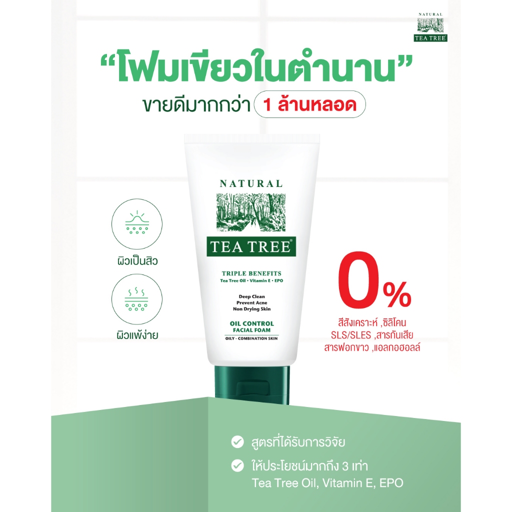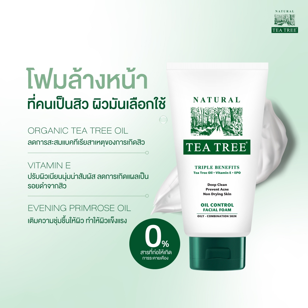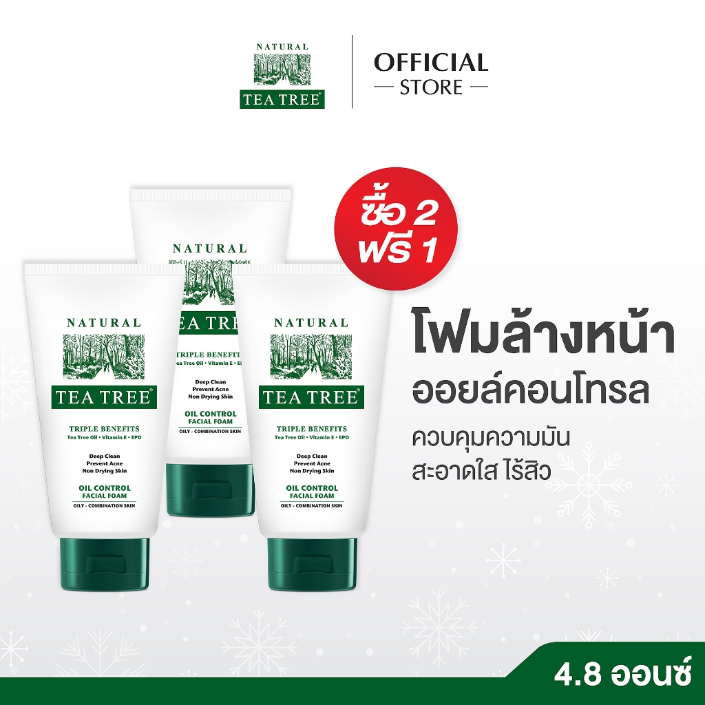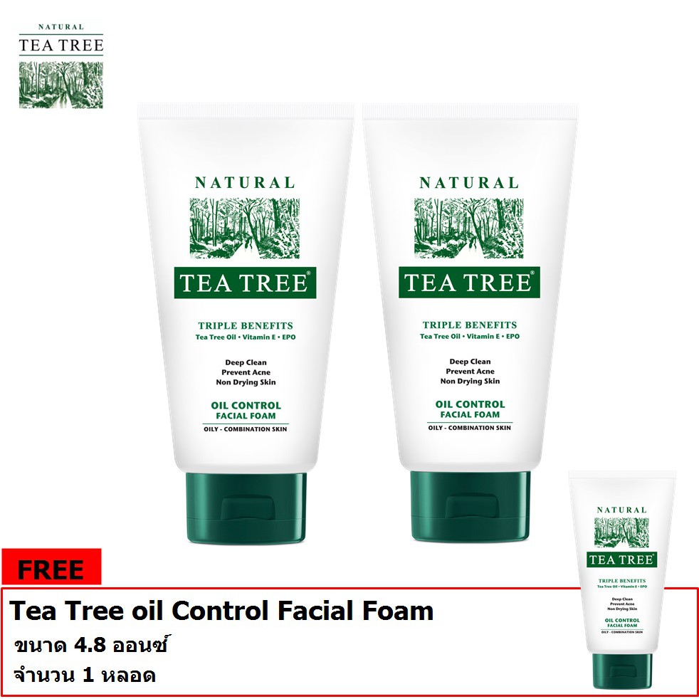 [2 แถม 1] Tea Tree ที ทรี โฟมล้างหน้า ออยล์คอนโทรล 140 กรัม (Oil Control Facial Foam) ลดสิว คุมมัน