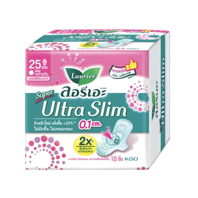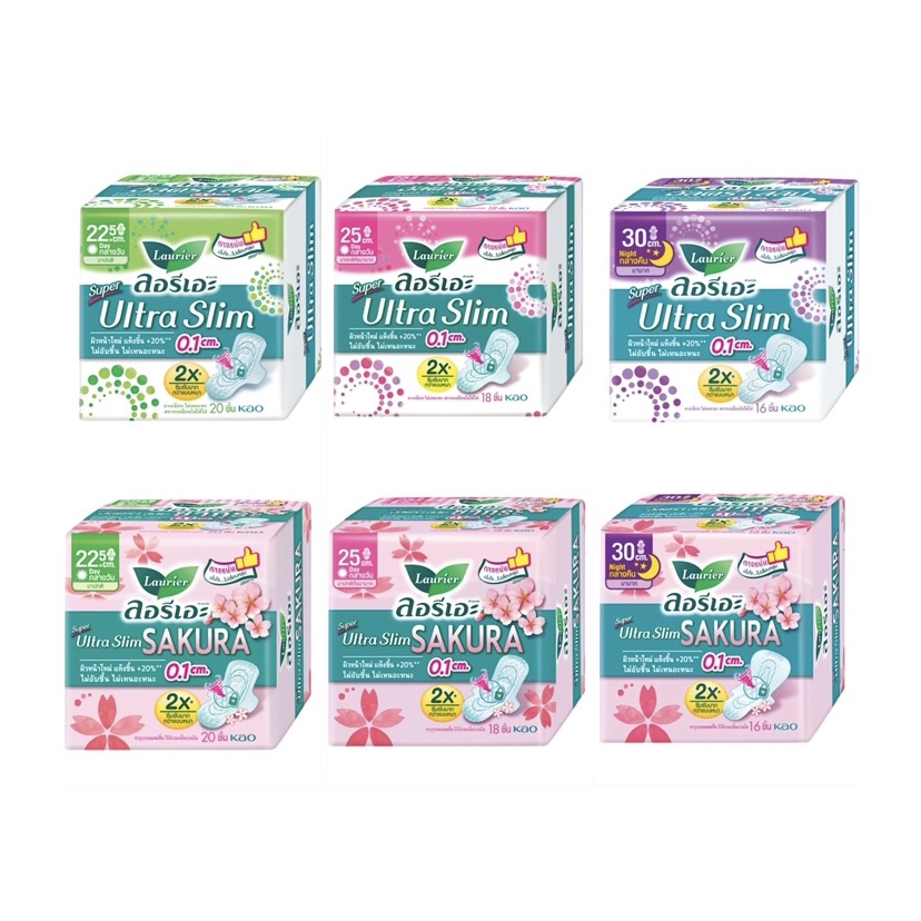 laurier super ultra slim ลอริเอะ ผ้าอนามัย ซูเปอร์ อัลตร้า สลิม 16 แผ่น/18 แผ่น /20 แผ่น