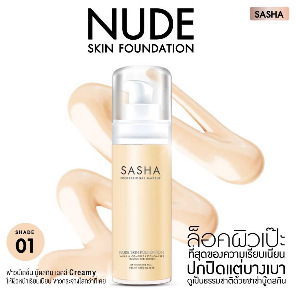 ครีมรองพื้น ผสมกันแดด SASHA NUDE SKIN FOUNDATION SPF 35 PA++ ปิดปิดริ้วรอย รอยฝ้า กระ จุดด่างดำ