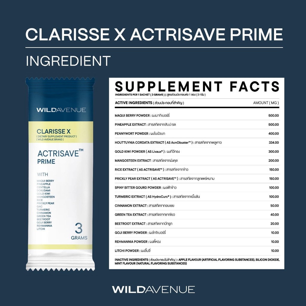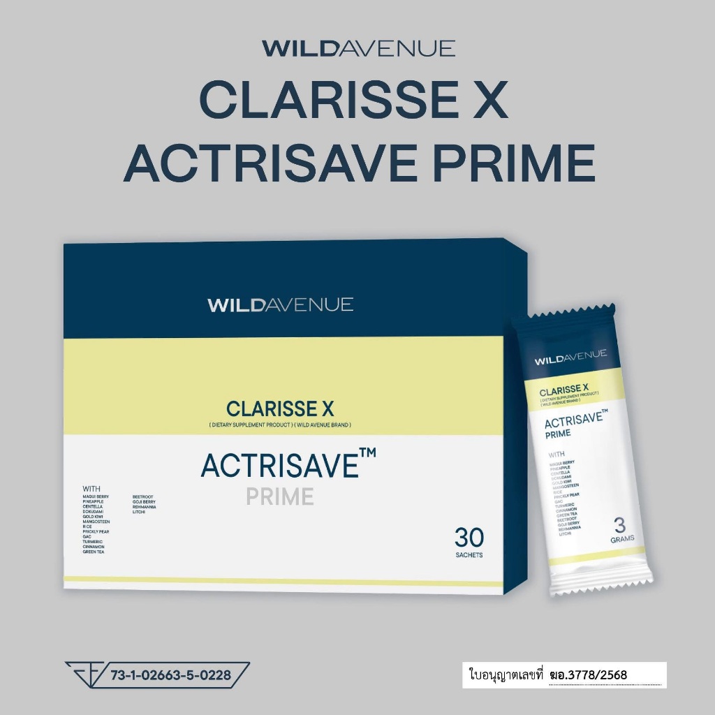 WILD AVENUE CLARISSE X ACTRISAVE PRIME อาหารเสริ มดูแลผิวเป็นสิวจากภายใน 1 กล่อง บรรจุ 30 ซอง