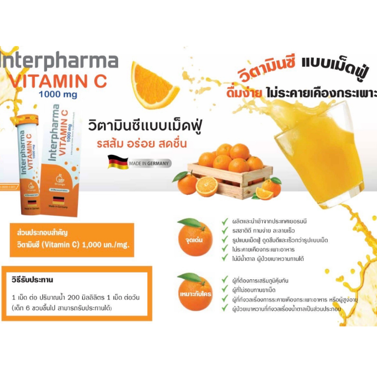 Interpharma Vitamin C 1,000 mg. อินเตอร์ฟาร์มา วิตามินซี 1,000 มก.