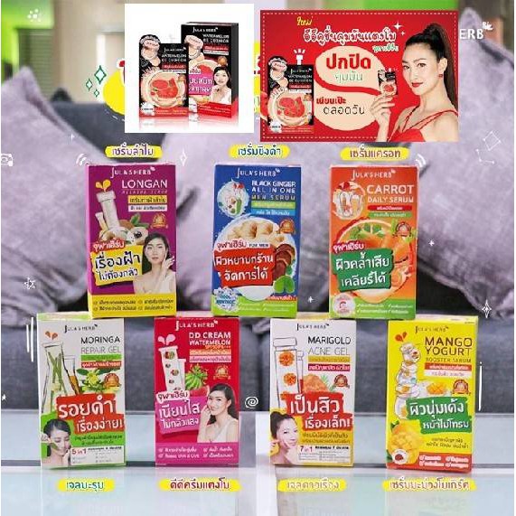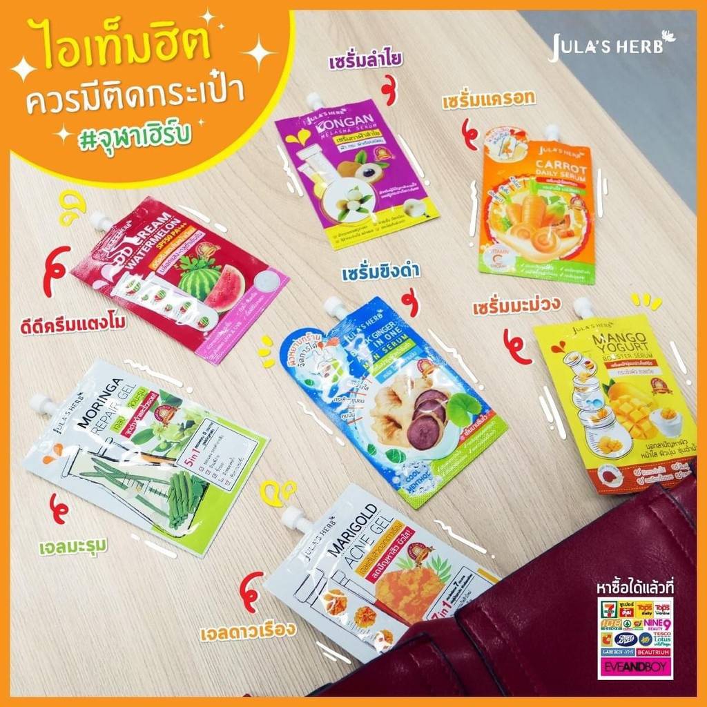 ( 1 ซอง) Jula’s Herb จุฬาเฮิร์บ 8 สูตร ครีมซอง แตงโม ลำไย มะรุม ดาวเรือง ดีดีครีม อีอี ครีม ขิง แครอท