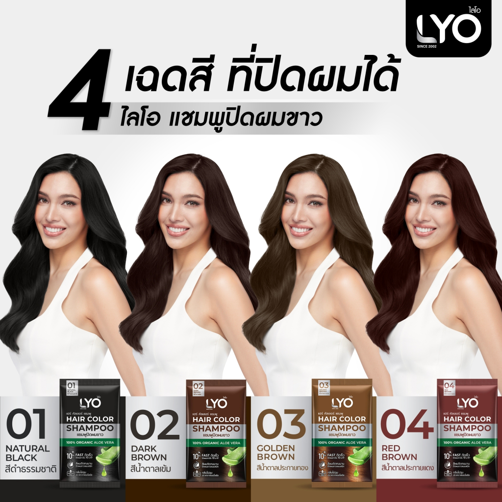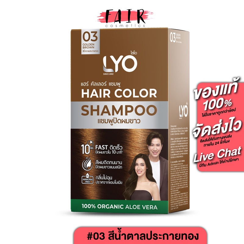 [03 สีน้ำตาลประกายทอง] LYO Hair Color Shampoo ไลโอ แฮร์ คัลเลอร์ แชมพู [6 ซอง] แชมพูปิดผมขาว
