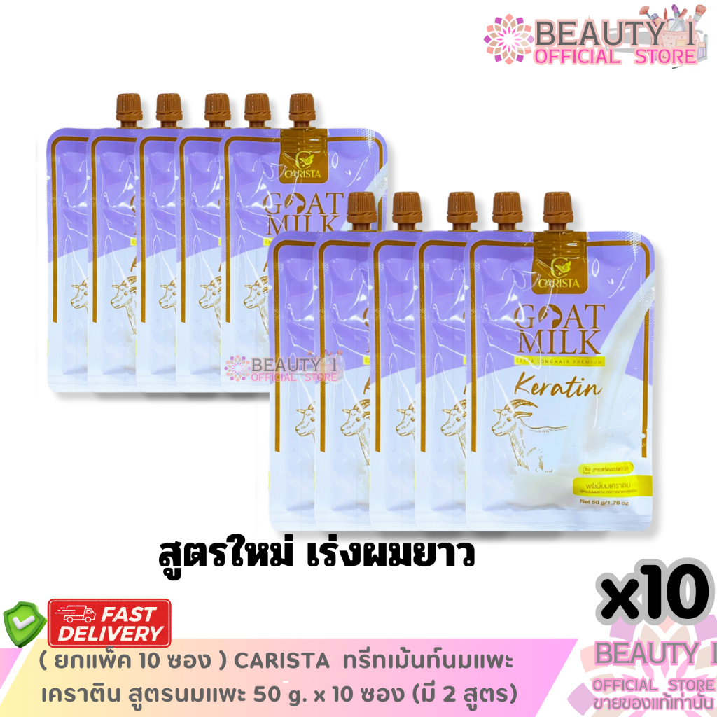 ( ยกแพ็ค 10 ซอง ) CARISTA ทรีทเม้นท์นมแพะ เคราติน สูตรนมแพะ 50 g. x 10 ซอง (มี 2 สูตร)