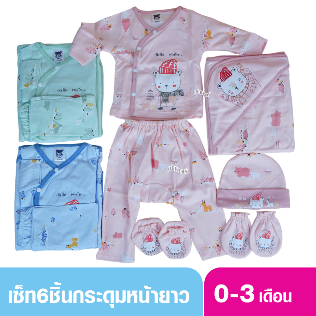 Mami มามิเบบี้ เซ็ท6ชิ้น เสื้อผ้าเด็กแรกเกิดกระดุมหน้ายาว 0-3 เดือน