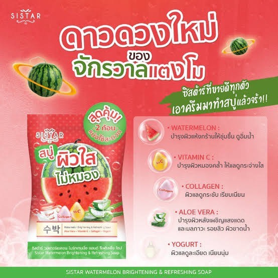 🔥1ก้อน🔥Sistar Soap สบู่แตงโม ซิสต้าร์ & สบู่ไชเท้า ซิสต้าร์ 60 กรัม (1 ซอง บรรจุ 2 ก้อน )