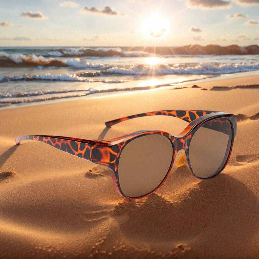 แว่นกันแดดโพลาไรซ์ ทรงกลม แบบแมวนัยน์ตา สามารถสวมทับแว่นสายต้าได้ แฟชั่นอินเทรนด์