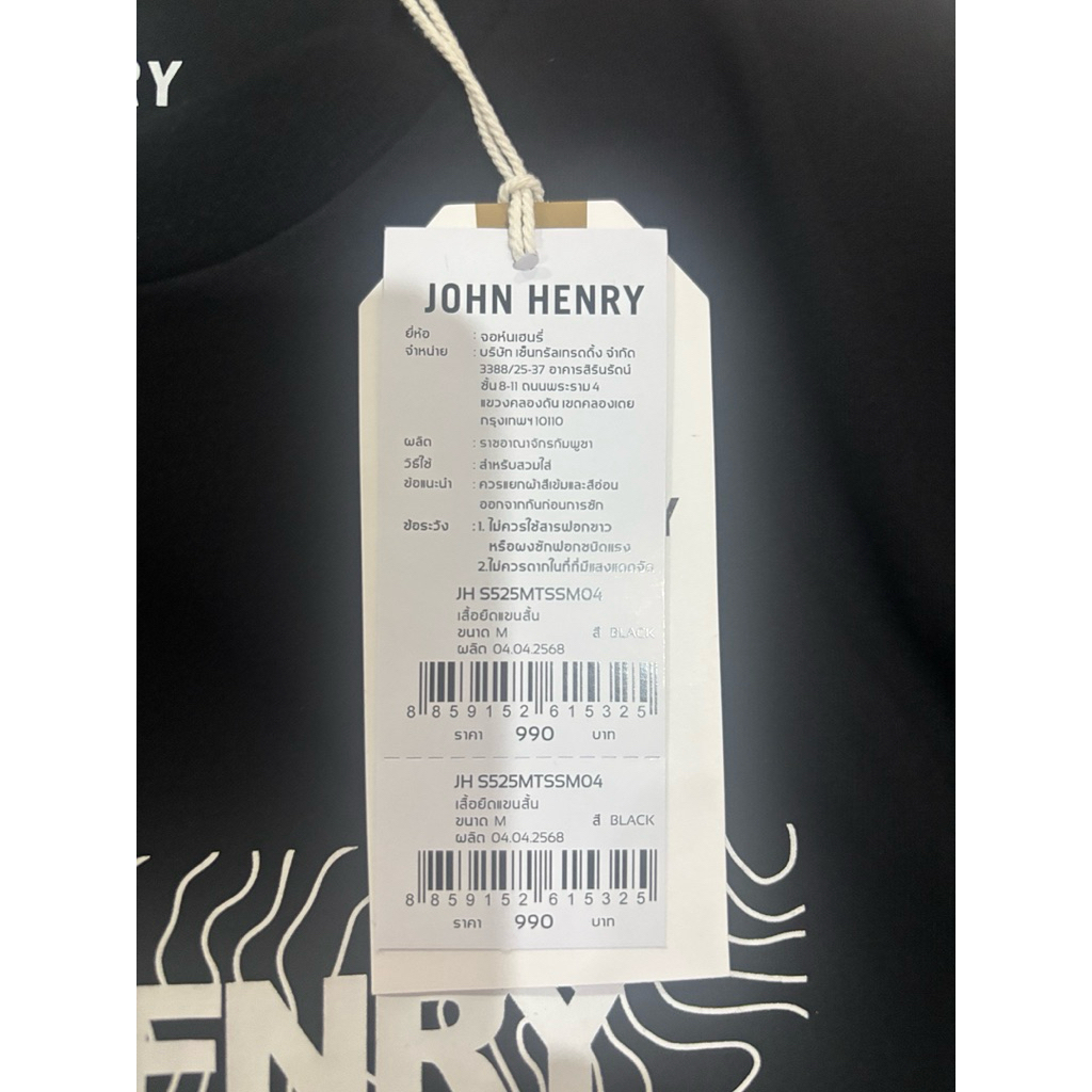 เสื้อยืดคอกลมสีดำJohn henryไซส์ M ของแท้มือหนึ่ง