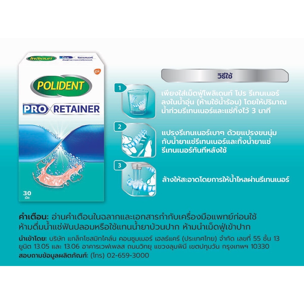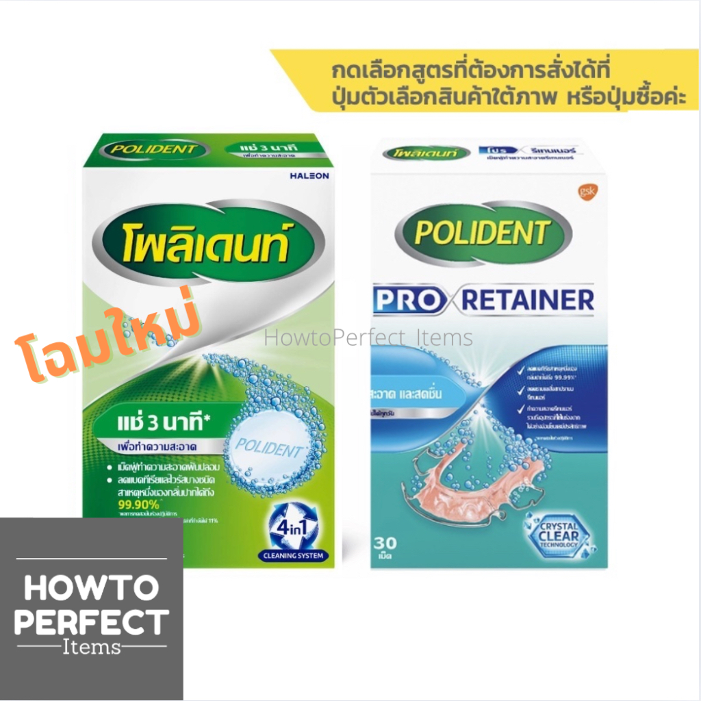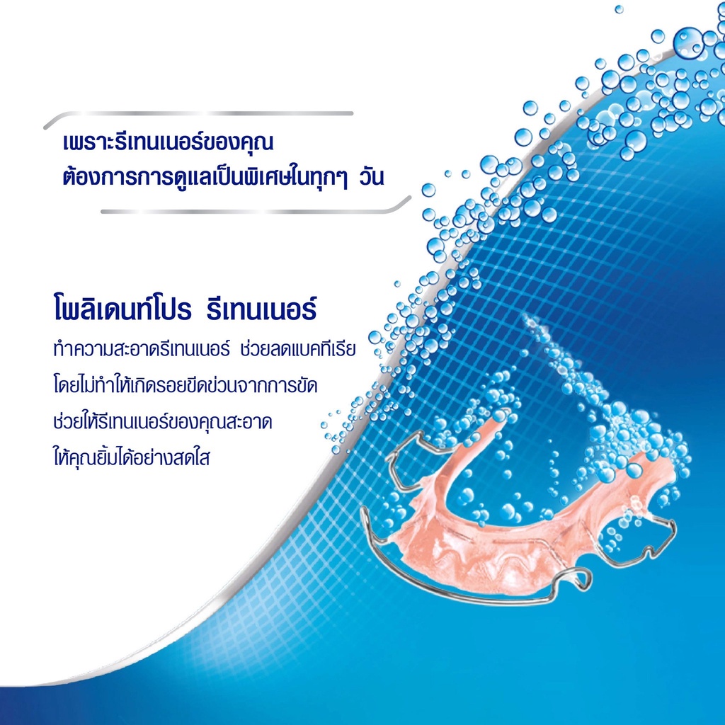 Polident เม็ดฟู่ โพลิเดนท์ ทำความสะอาดฟันปลอม เหมาะสำหรับฟันปลอม รีเทนเนอร์ และเฝือกสบฟัน POLIDENT PRO RETAINER Haleon