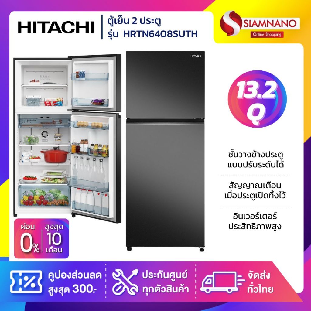 ตู้เย็น 2 ประตู HITACHI รุ่น HRTN6408SUTH ขนาด 13.2Q สีดำ (รับประกันนาน 10 ปี)