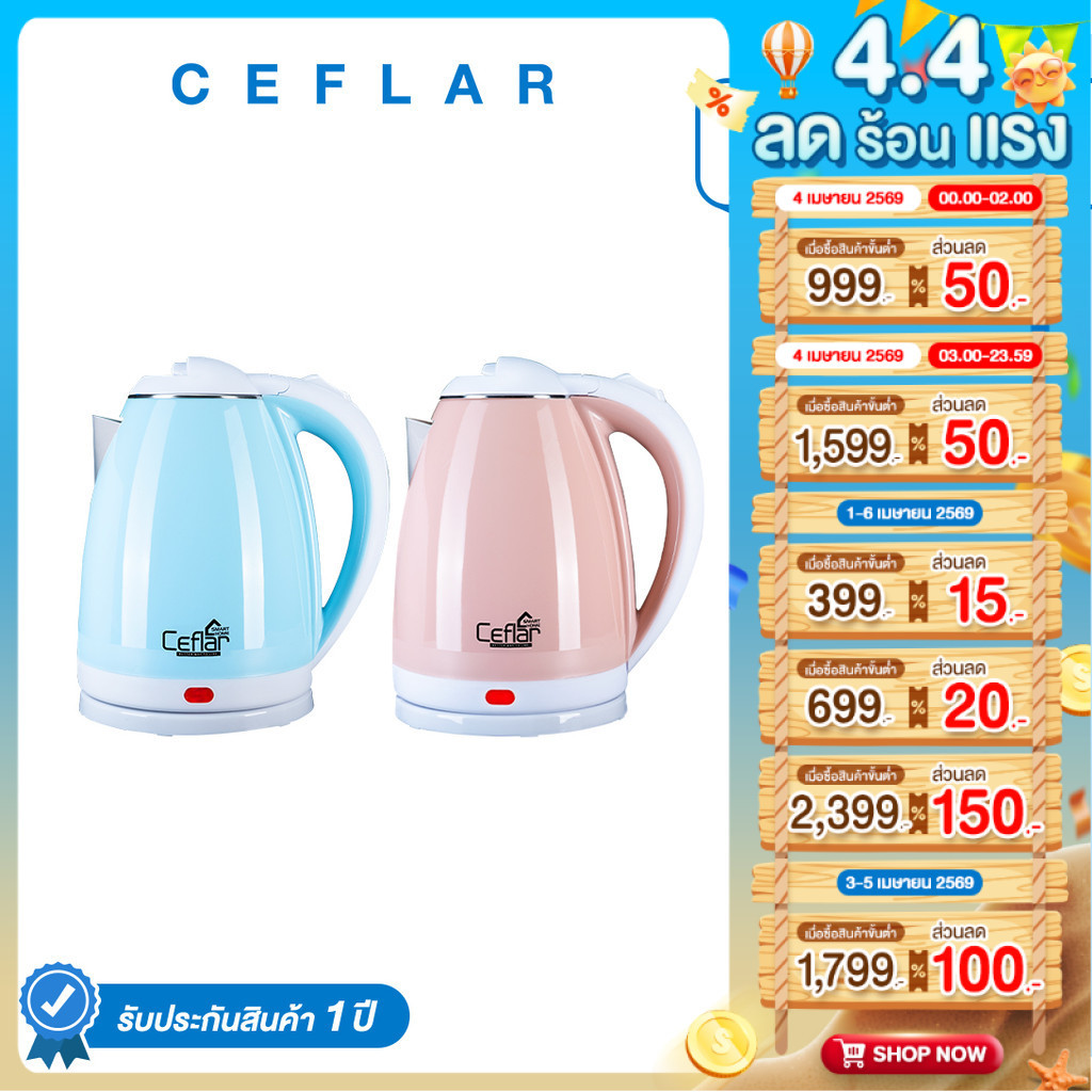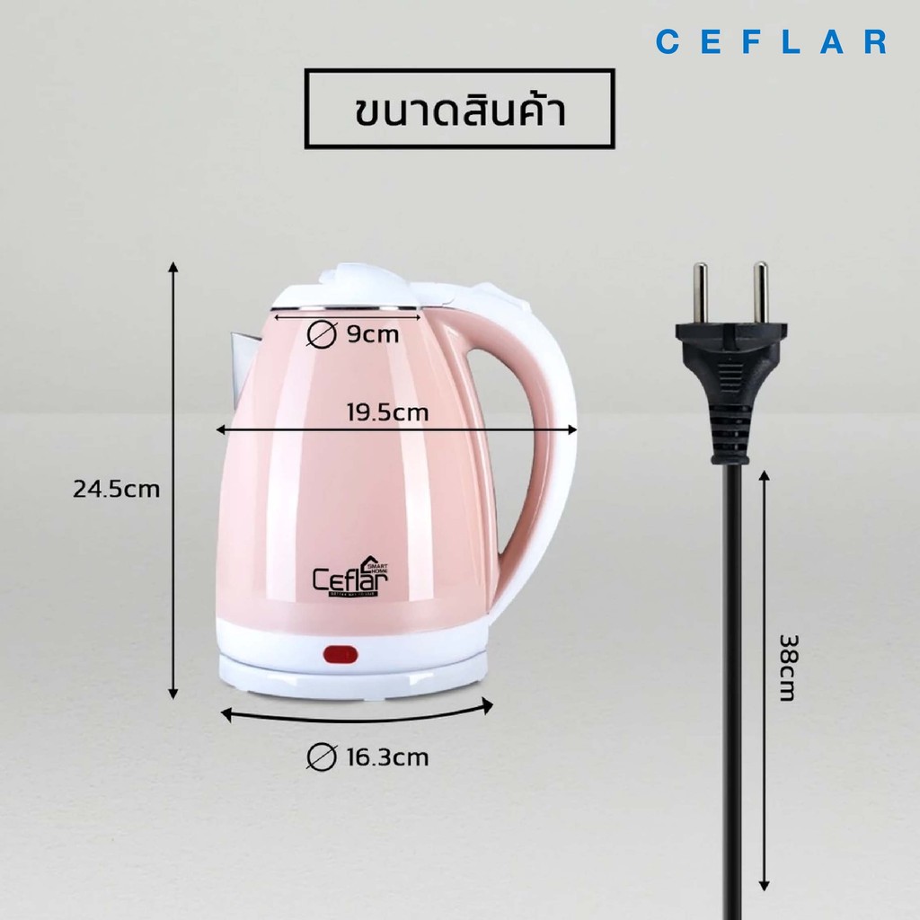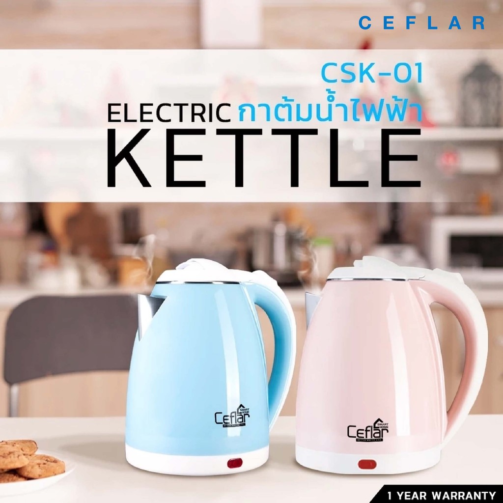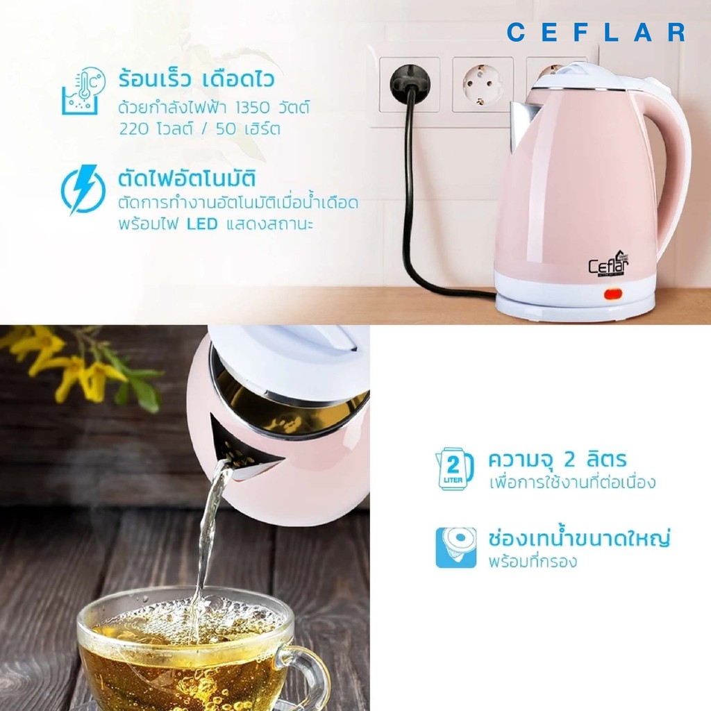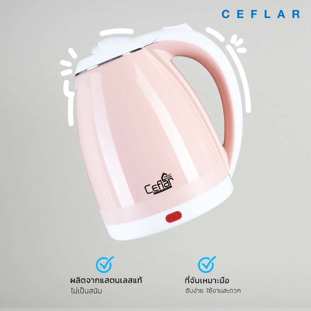 CEFLAR กาต้มน้ำไฟฟ้า 2L CSK-02 ร้อนไว ประหยัดไฟ ตัดอัตโนมัติ ใช้งานง่าย พกพาสะดวก