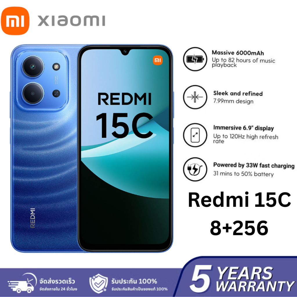 [New] Xiaomi Redmi 15C 8+256 จอใหญ่ เต็มตา 6.9 นิ้ว ความละเอียด HD+ กล้องคมชัด 50MPพร้อม AI แบตอึดเต็มวัน 6000mAh