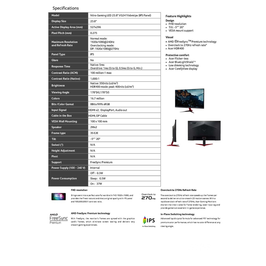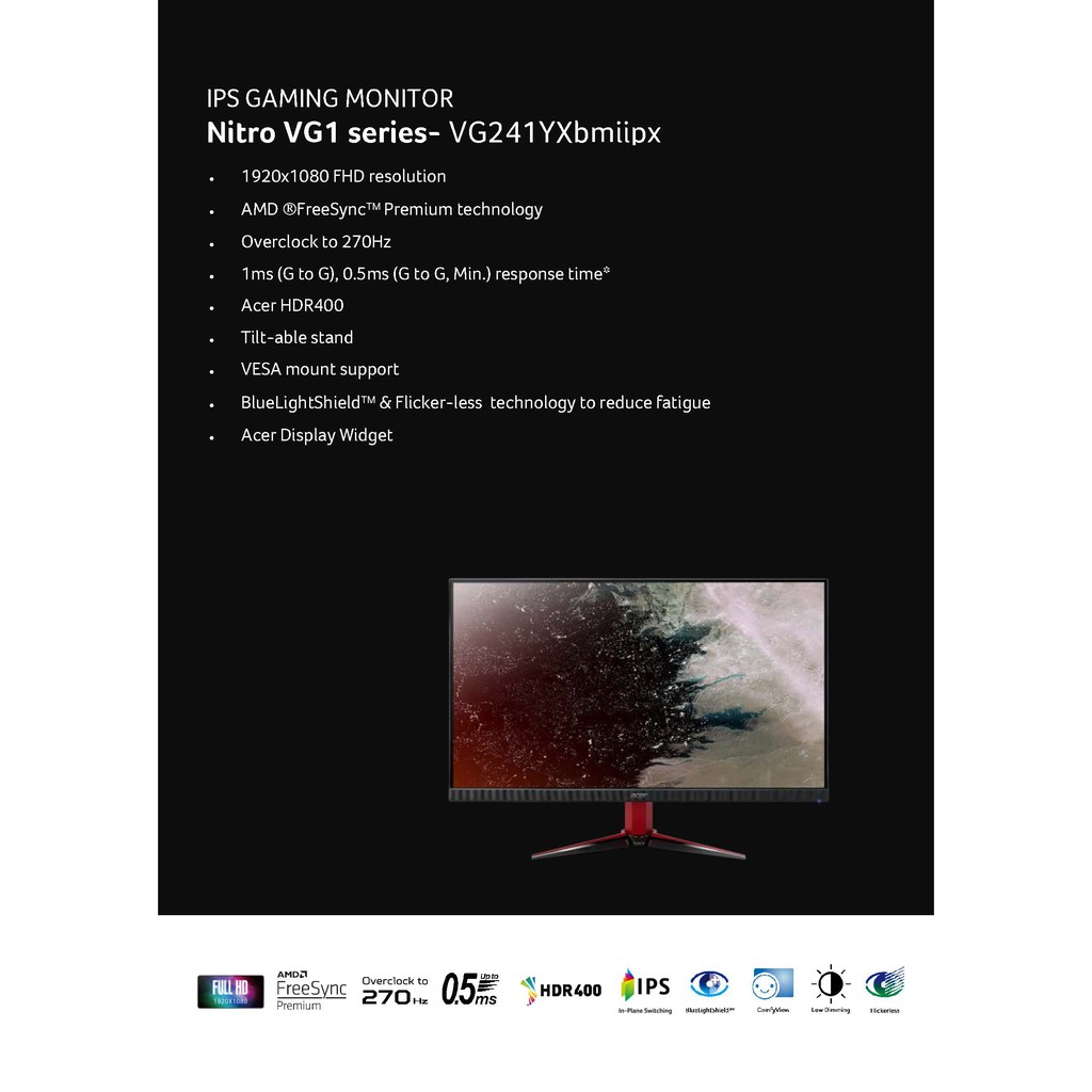 ACER Gaming Monitor รุ่น VG241Yxbmiipx 23.8" IPS (HDMI,DP,SPK) 240Hz-OC 270Hz ประกัน 3 ปี