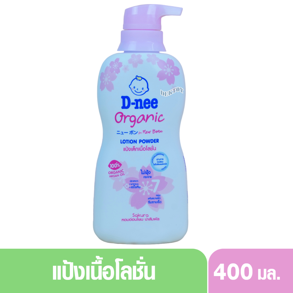 D-nee ดีนี่ แป้งเด็กเนื้อโลชั่น ดีนี่ ออร์แกนิค ฟอร์นิวบอร์น โลชั่น พาวเดอร์ 400 มล. กลิ่นซากุระสีชมพู
