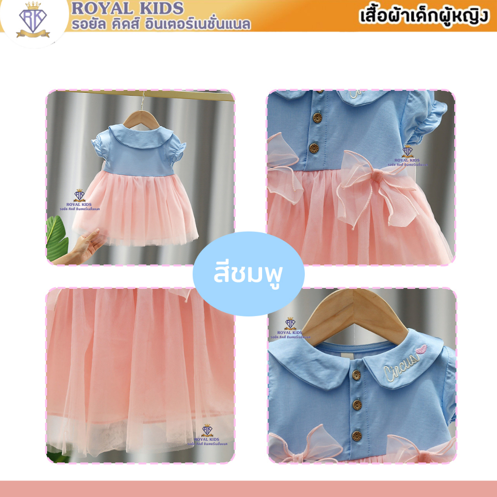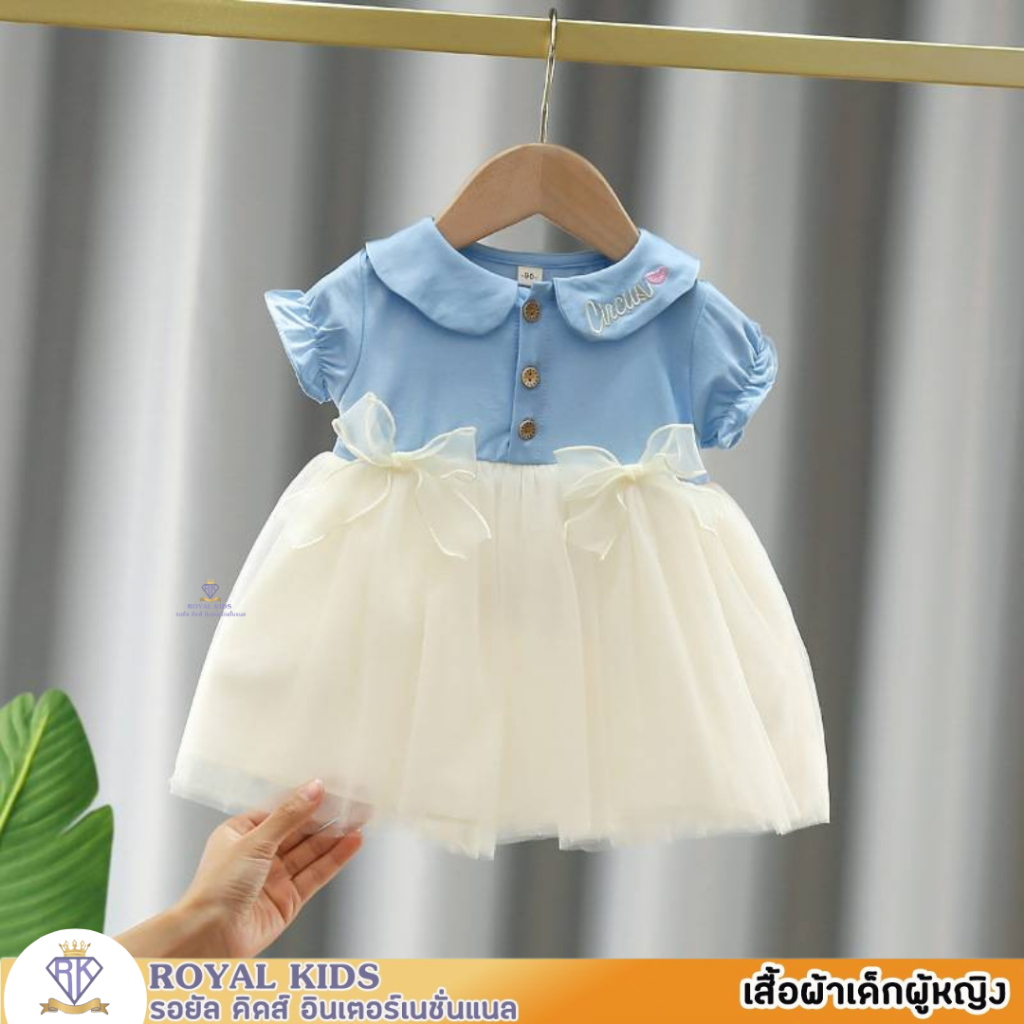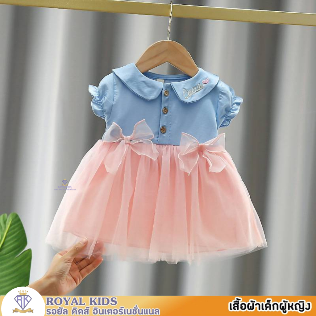 F0064 ชุดเดรส ชุดกระโปรงแขนสั้นเด็กผู้หญิง แขนตุ๊กตา กระโปรงชีฟองแต่งโบว์ น่ารักๆ สำหรับเด็กผู้หญิง