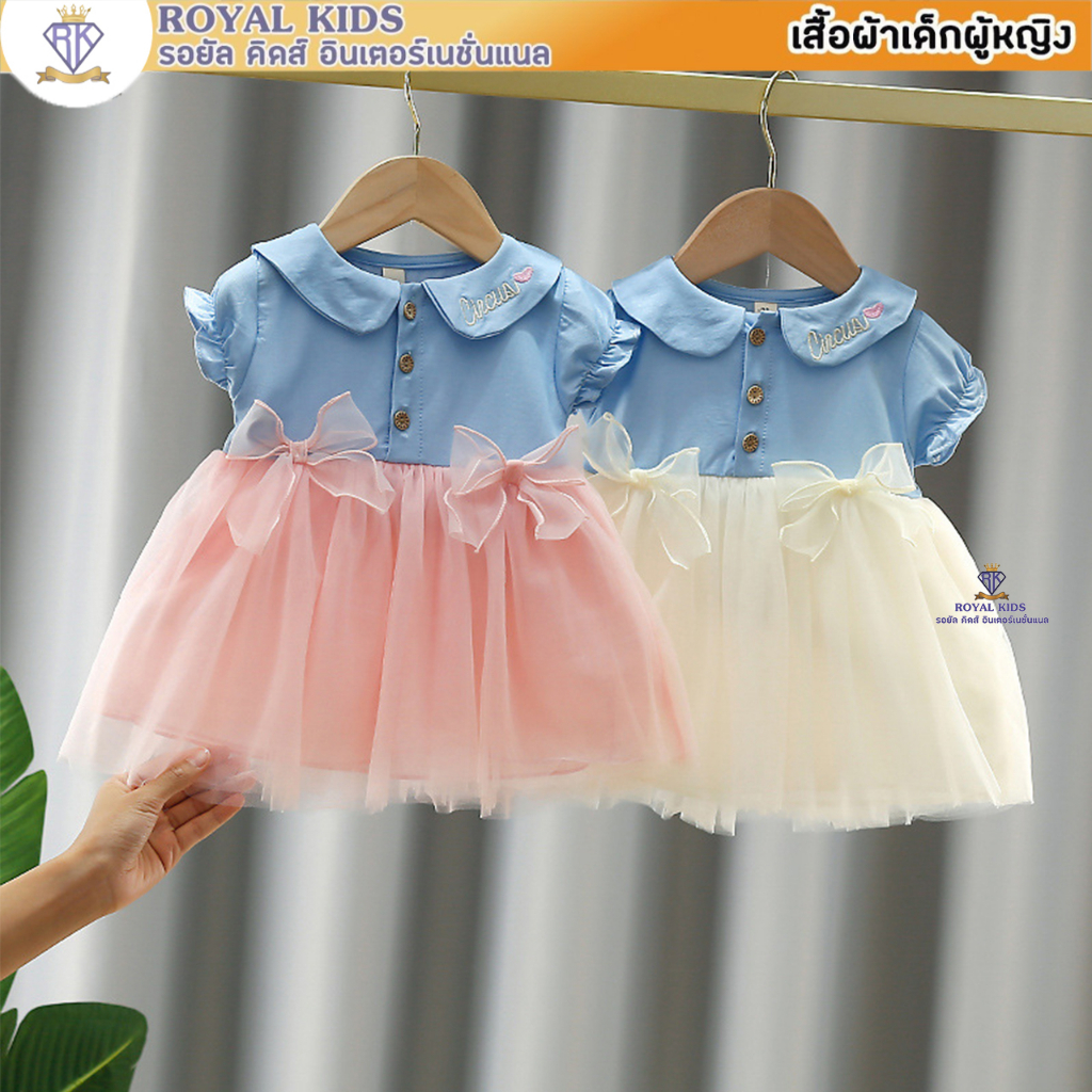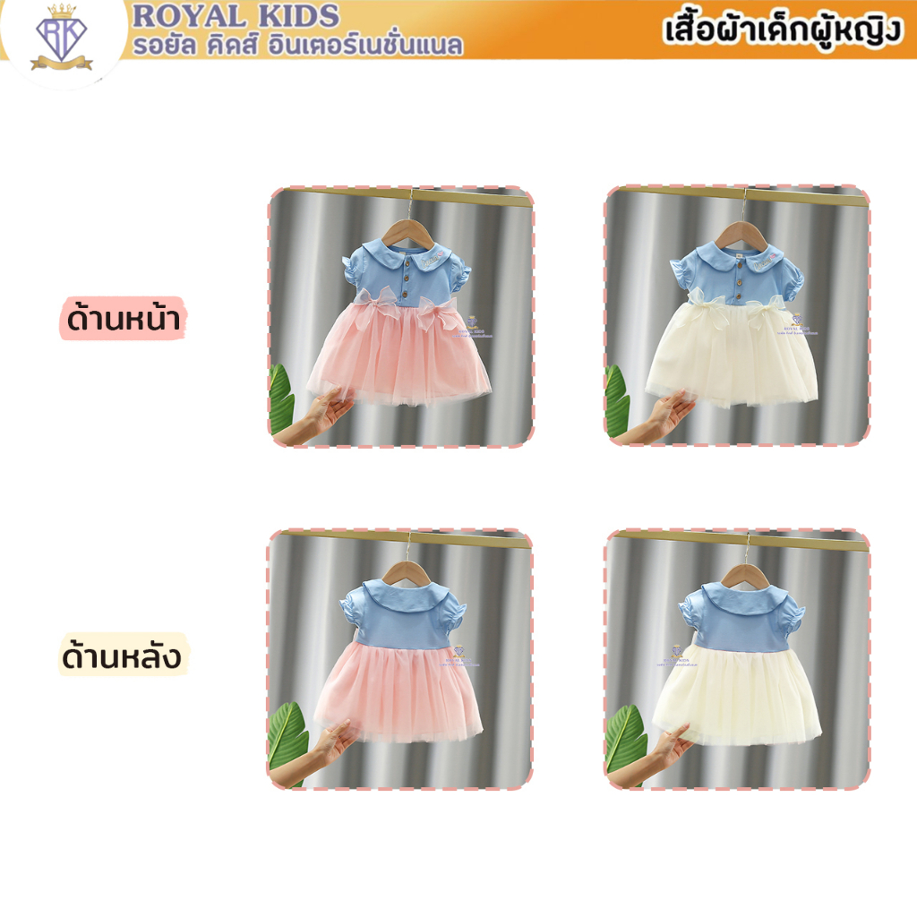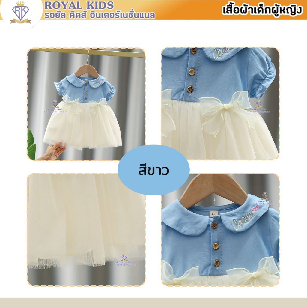 F0064 ชุดเดรส ชุดกระโปรงแขนสั้นเด็กผู้หญิง แขนตุ๊กตา กระโปรงชีฟองแต่งโบว์ น่ารักๆ สำหรับเด็กผู้หญิง