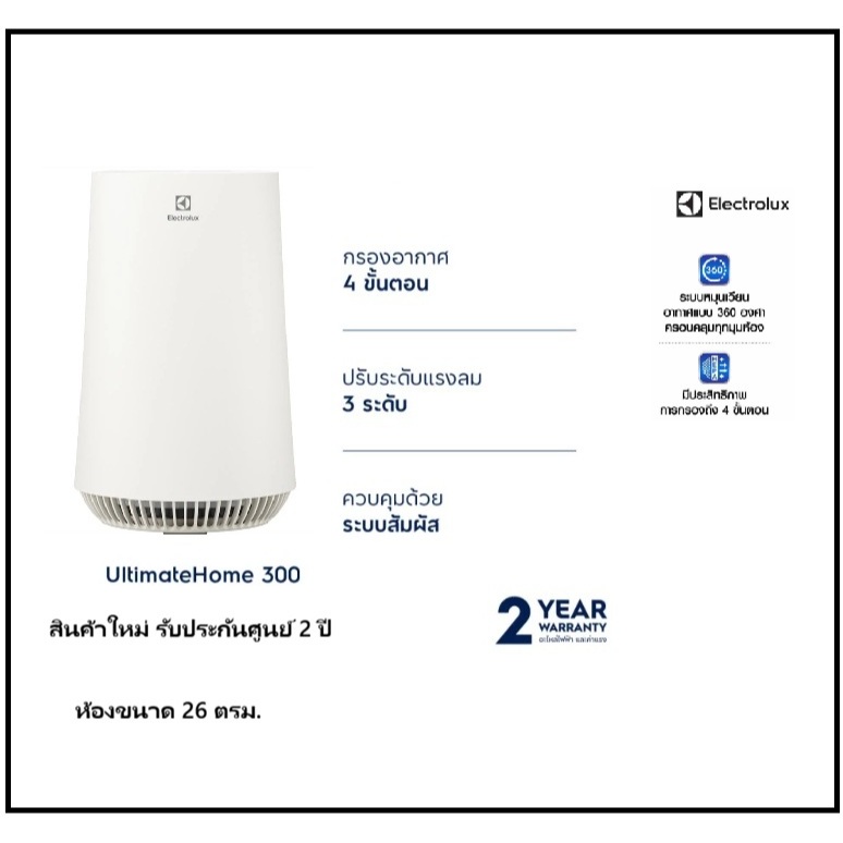 เครื่องฟอกอากาศElectrolux ศรุ่นFA31-200wt UltimateHome 300ตัวกรอง 4 ขั้นตอน สำหรับห้องขนาด 26 ตร.ม. รับประกันศูนย์2ปี