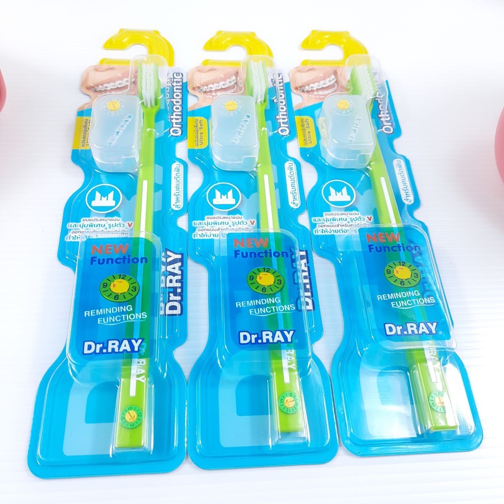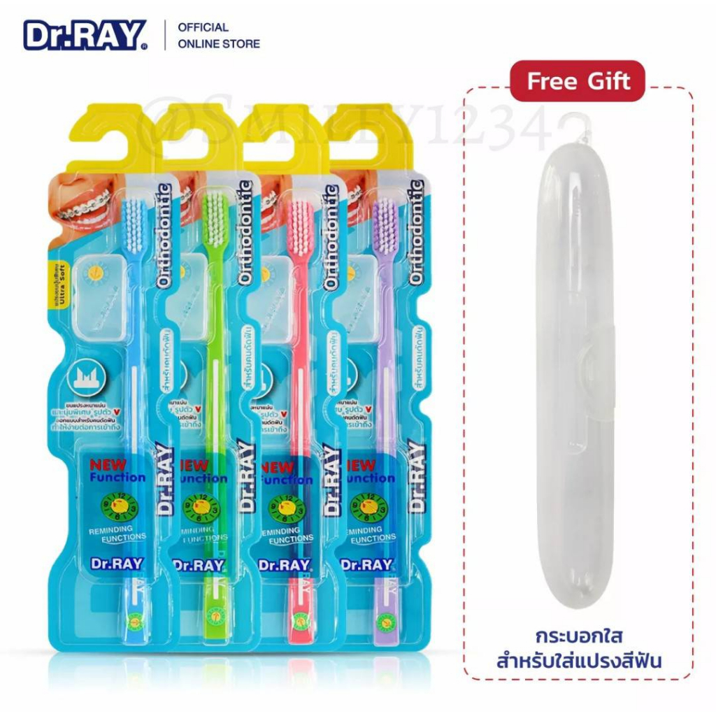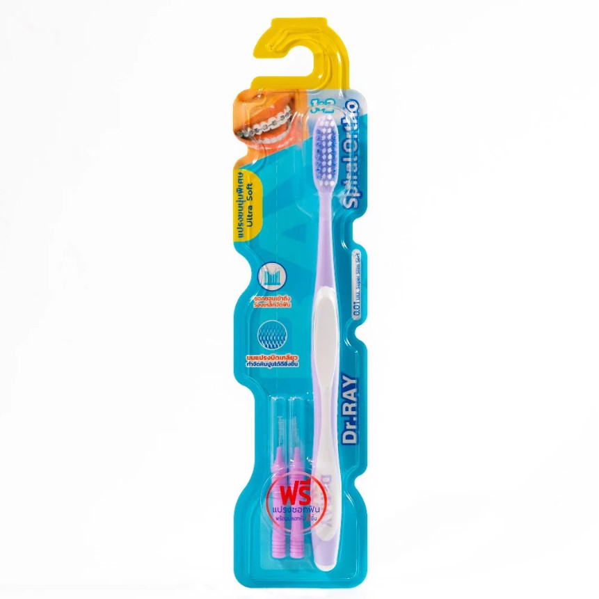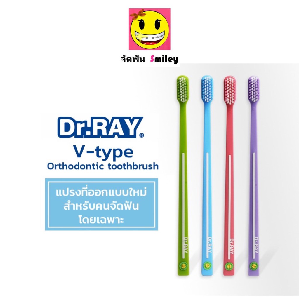 Dr.Ray แปรงจัดฟัน Orthodontic, Travel, Spiral, Multicolor รูปตัวV ขนแปรงหนาแน่น รุ่นปกติ กับ รุ่นพิเศษ+แปรงซอกฟัน 2 ชิ้น