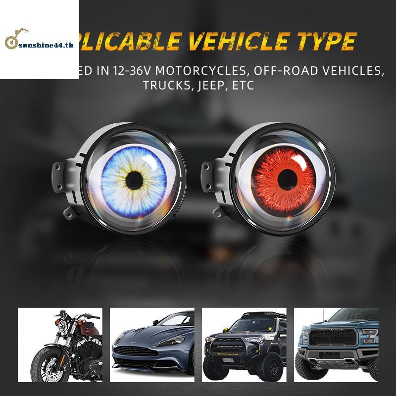FOURSUN รถ Devil Eye LED ไฟหน้า 6 โหมดแสงน้อยควบคุมบรรยากาศในรถยนต์ Universal รถจักรยานยนต์เลนส์ไฟหน้า TH