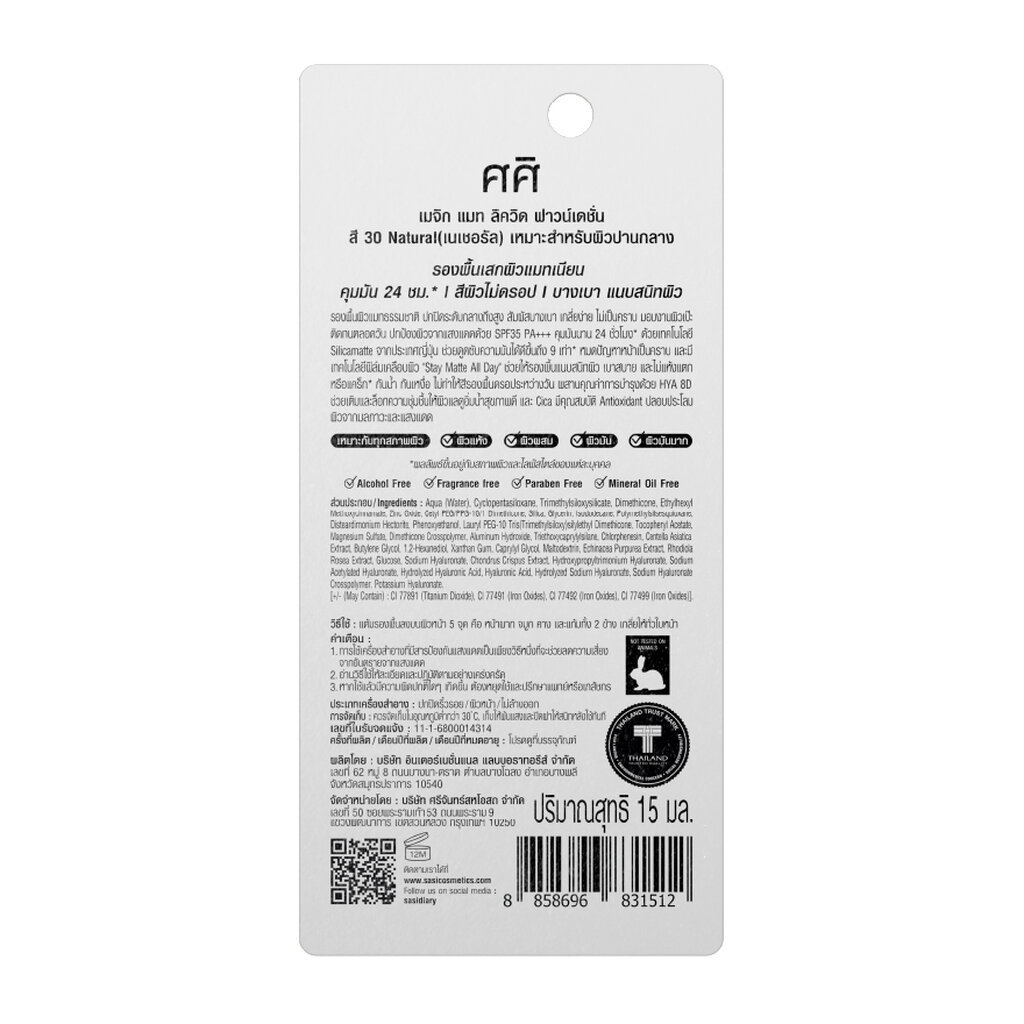 Sasi ศศิ เมจิก แมท ลิควิด ฟาวน์เดชั่น 15มล. 30 เนเชอรัล