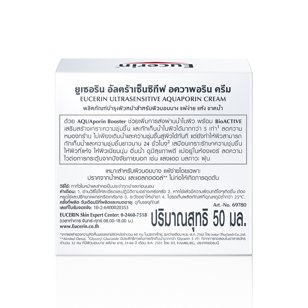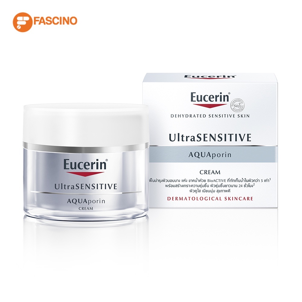 Eucerin UltraSENSITIVE AQUAporin Cream 50 ml. AQUAporin Cream ฟื้นบำรุงผิวแห้งขาดน้ำสำหรับผิวแพ้ง่าย