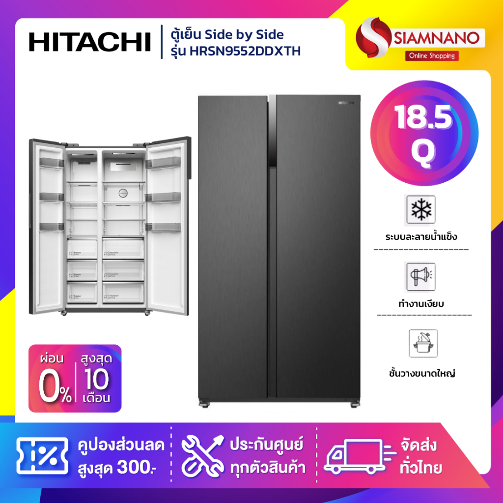 ตู้เย็น Side by Side HITACHI รุ่น HRSN9552DDXTH ขนาด 18.5 Q (รับประกันนาน 10 ปี)