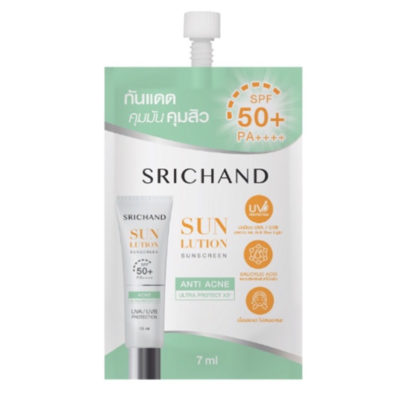กันแดด ศรีจันทร์ 7 และ 15 ml ซันลูชั่น ซันสกรีน Srichand Sunlution Sunscreen / Luminescence SPF50+ PA++++