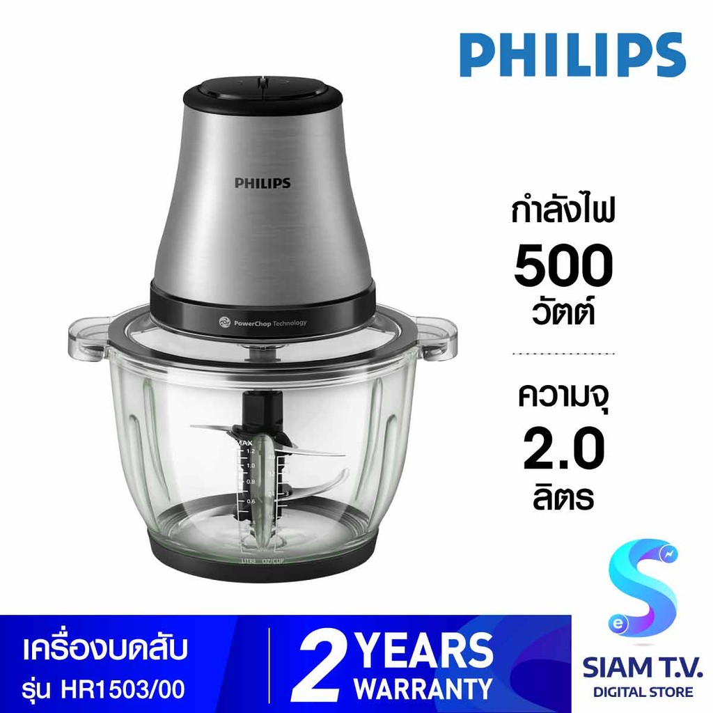 PHILIPS เครื่องบดสับ 500W โถแก้ว รุ่น HR1503/00 โดย สยามทีวี by Siam T.V.