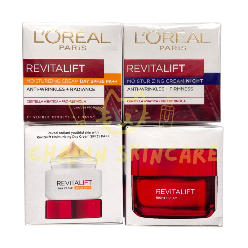 (Lotใหม่ NIGHTแพ็คเก็จใหม่) LOREAL REVITALIFT CREAM DAY 50ml + NIGHT 50ml ลอรีอัล รีไวทัลลิฟท์เดย์ครีม+ไนท์ครีม