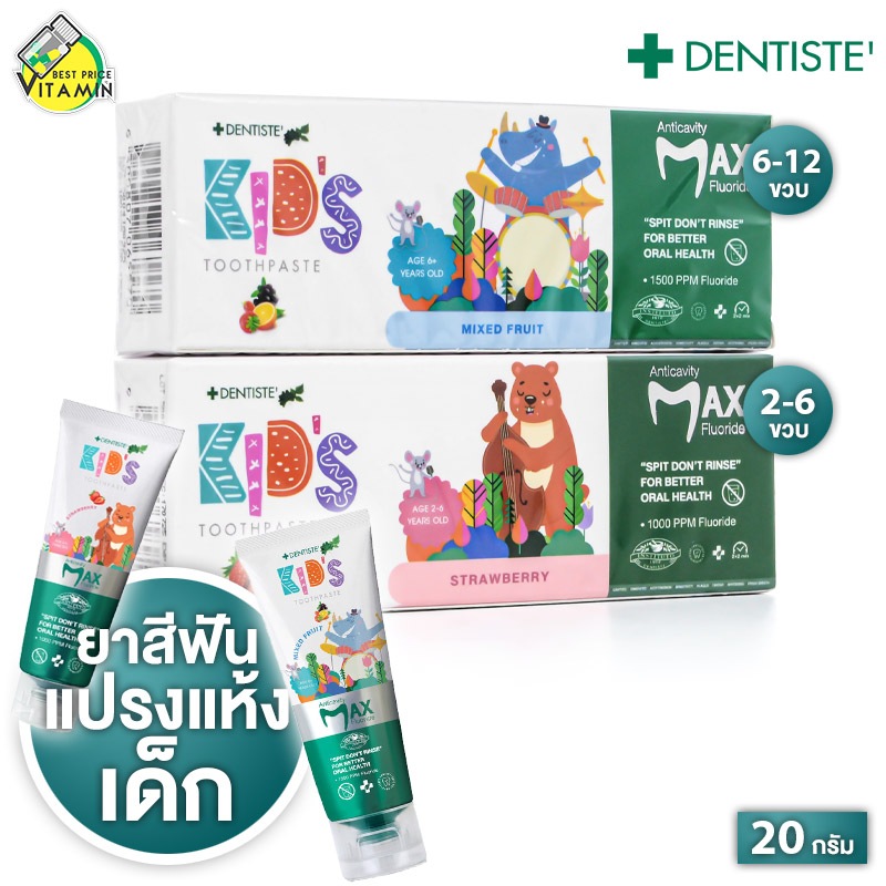 Dentiste Kids Toothpaste Strawberry/Mixed Fruit ยาสีฟัน เดนทิสเต้ คิดส์ สตรอว์เบอร์รี่/มิกซ์ ฟรุ๊ต [20 g.] ยาสีฟันเด็ก ม