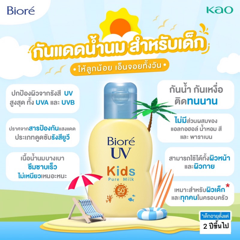 🇯🇵💫 Biore UV Kids Pure Milk 70 ml ครีมกันแดด บิโอเร ยูวี สูตรอ่อนโยนสำหรับเด็ก ของแท้นำเข้าจากญี่ปุ่น