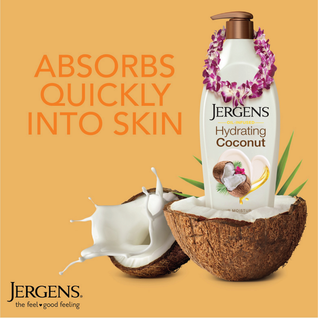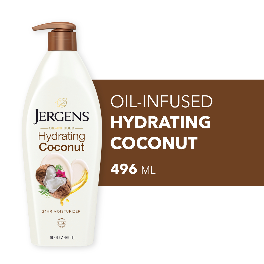 เจอร์เกนส์ ออยล์-อินฟิวส์ ไฮเดรติ้ง โคโคนัท 496 มล. JERGENS OIL-INFUSED HYDRATING COCONUT 24-HOUR MOISTURIZER 496 ML