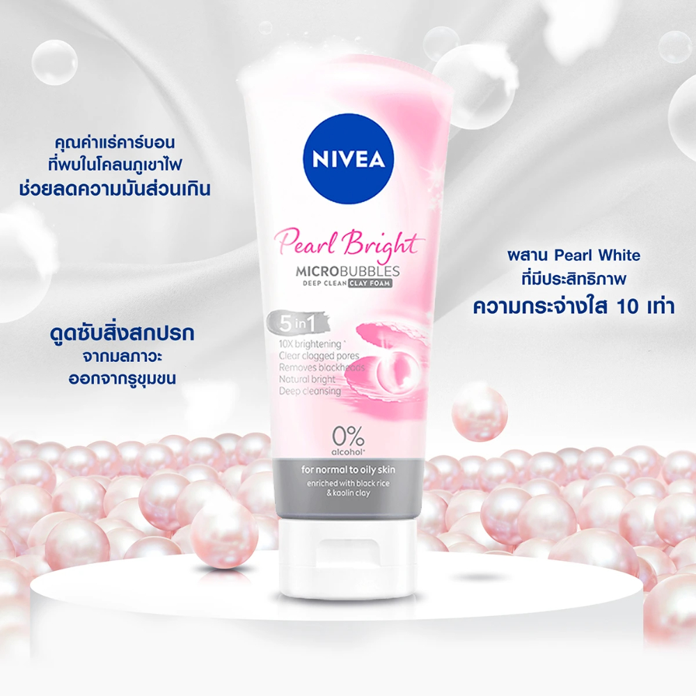 Nivea นีเวียโฟมล้างหน้า เพิร์ล ไวท์ 5 In 1 / C&HYA / แอคเน่ 50/100 กรัม โฟมล้างหน้าสำหรับผู้หญิง