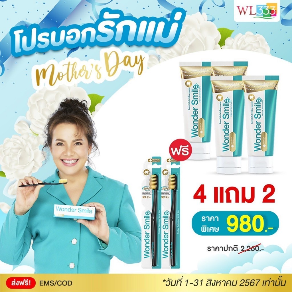 (ยาสีฟัน 2 แถม แปรง 1) wonder smile ยาสีฟัน วันเดอร์ สไมล์ ฟันขาว ปากสะอาด ลมหายใจหอมสดชื่น 80กรัม