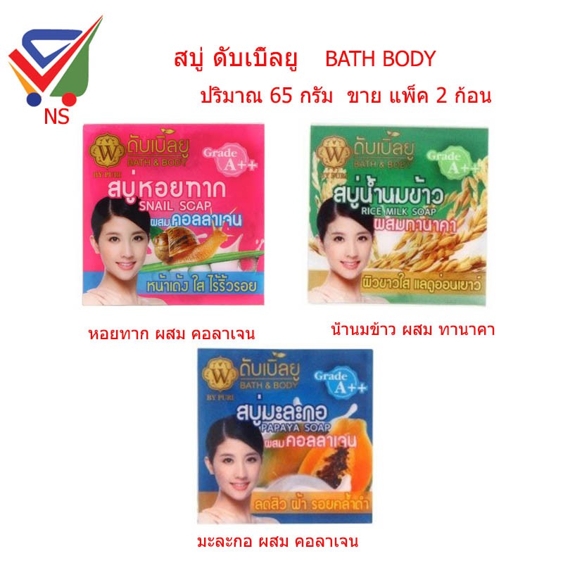์NS (ขายแพ็ค 2 ก้อน ) สบู่ดับเบิ้ลยู bath body มี 3 สูตร ปริมาณ 65 กรัม