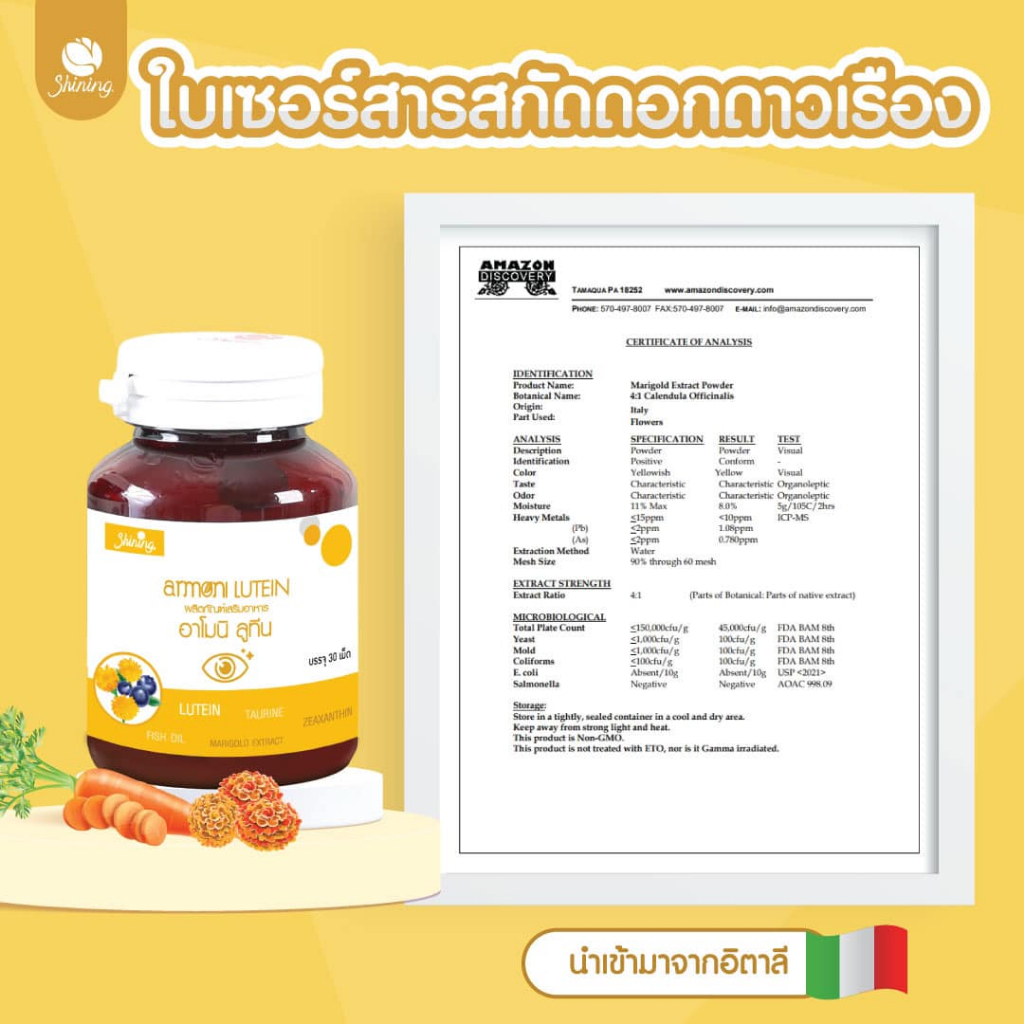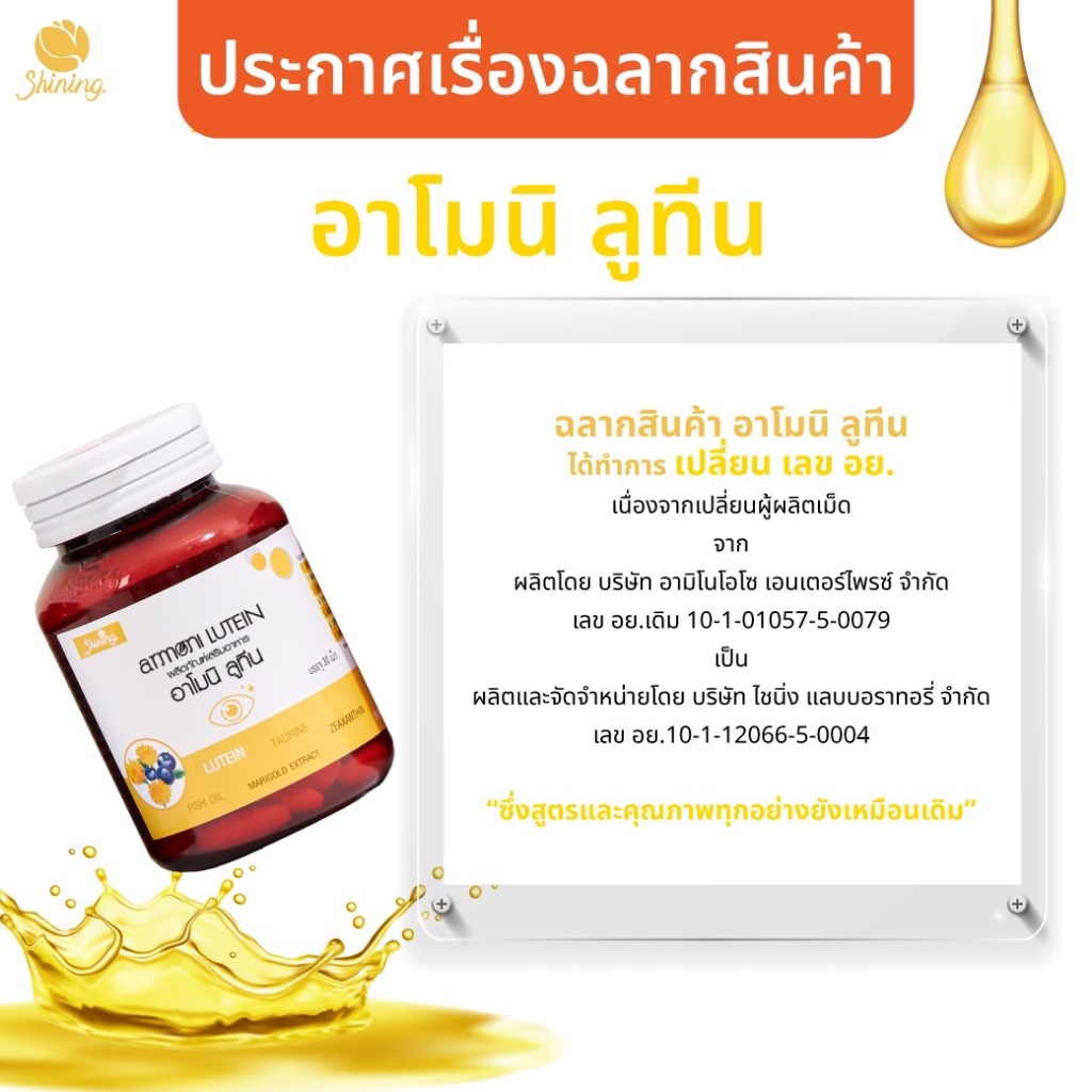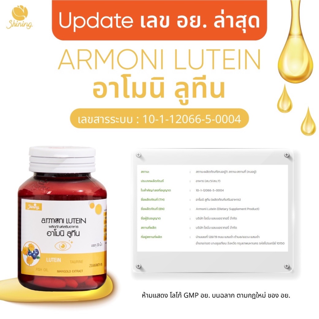 [1กระปุก] Shining Amoni Armoni Lutein อาโมนิ ลูทีน วิตามิน ลดตาเหลือง อาหารเสริม สุขภาพดี