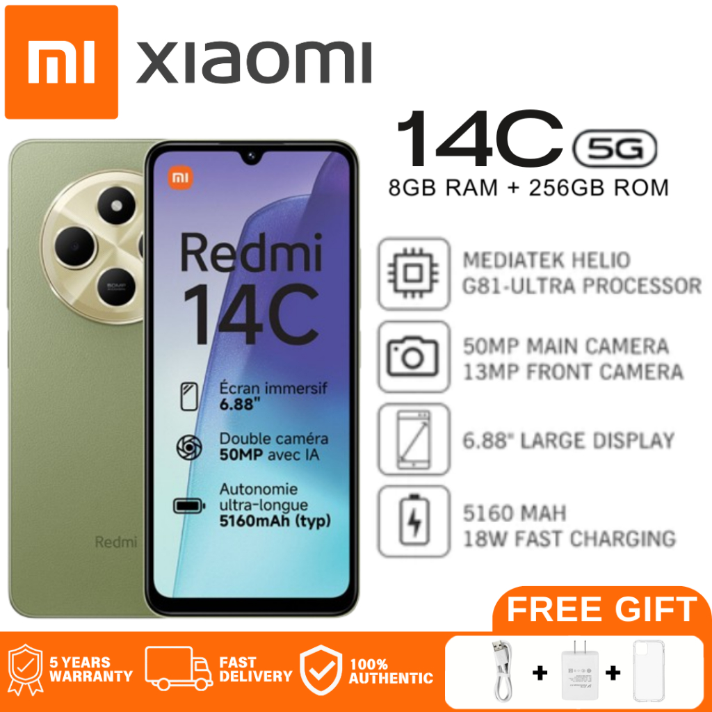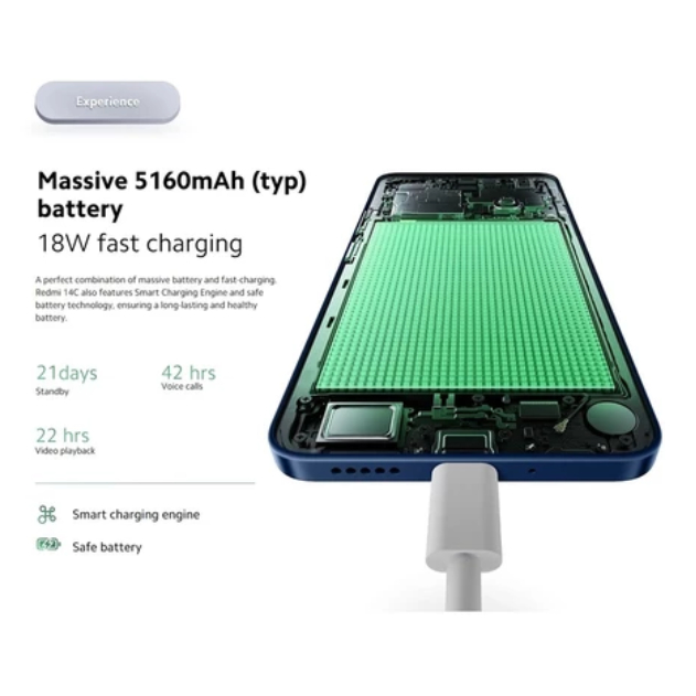 Redmi 14C สมาร์ทโฟน (8GB+256GB) หน้าจอ 6.88 นิ้ว,แบตเตอรี่ 5160 mAh ชาร์จเร็ว รับประกัน 12 เดือน