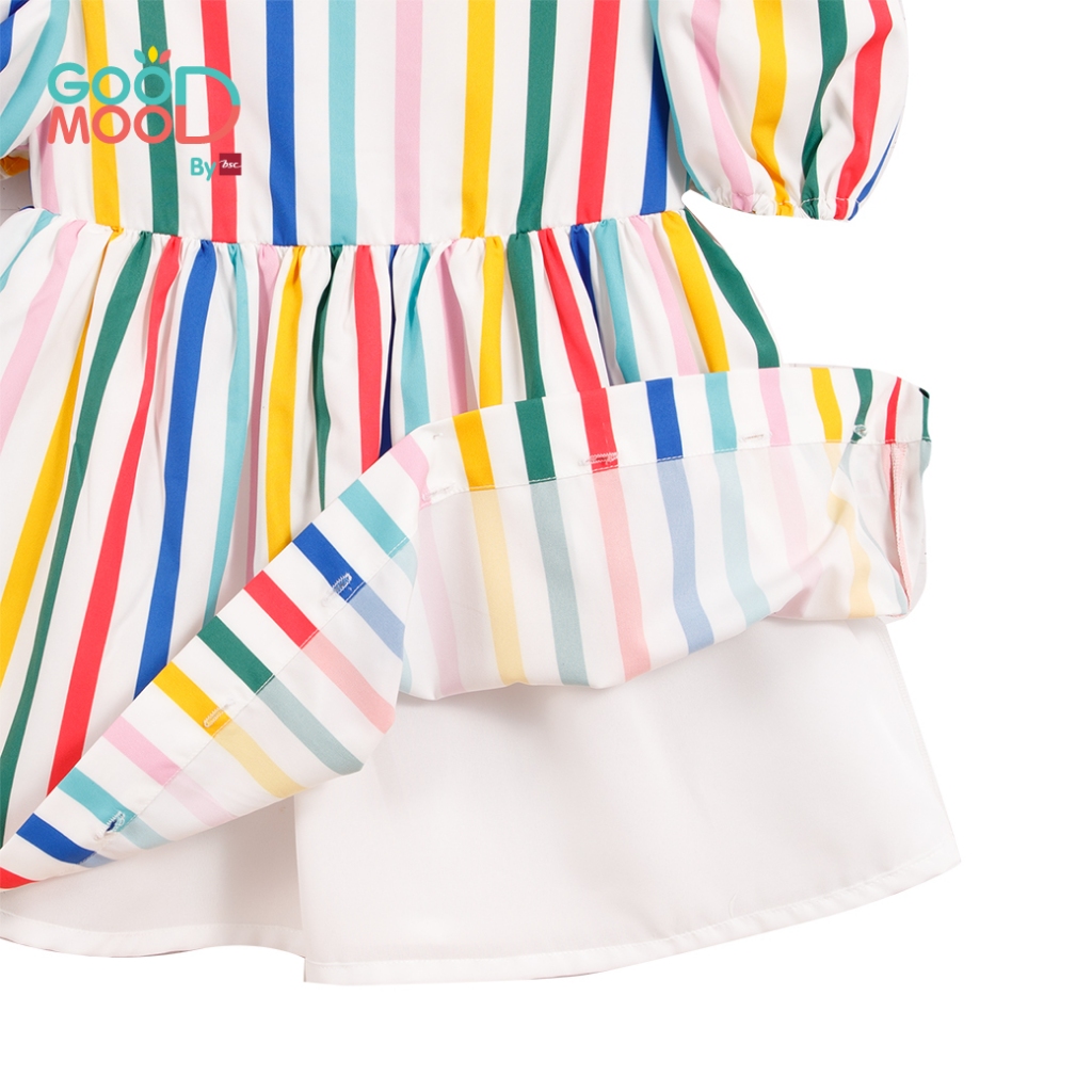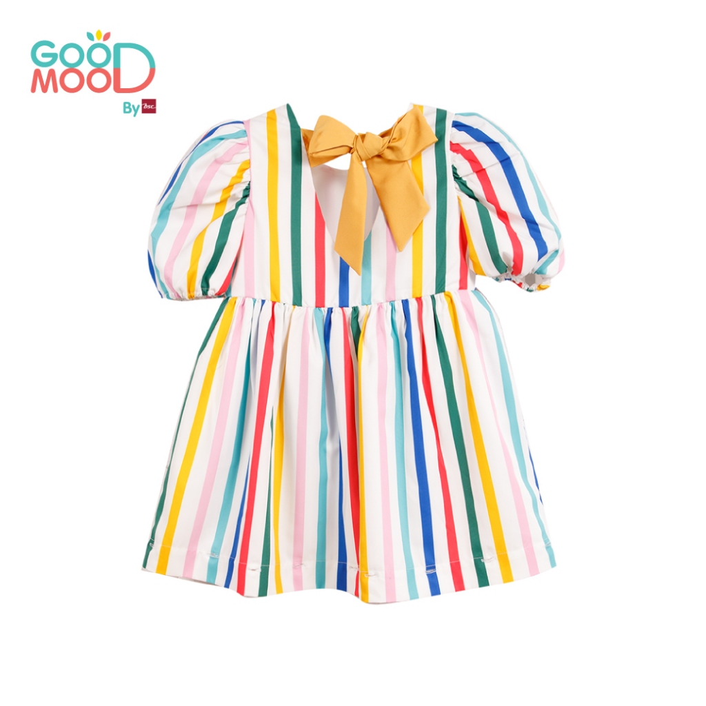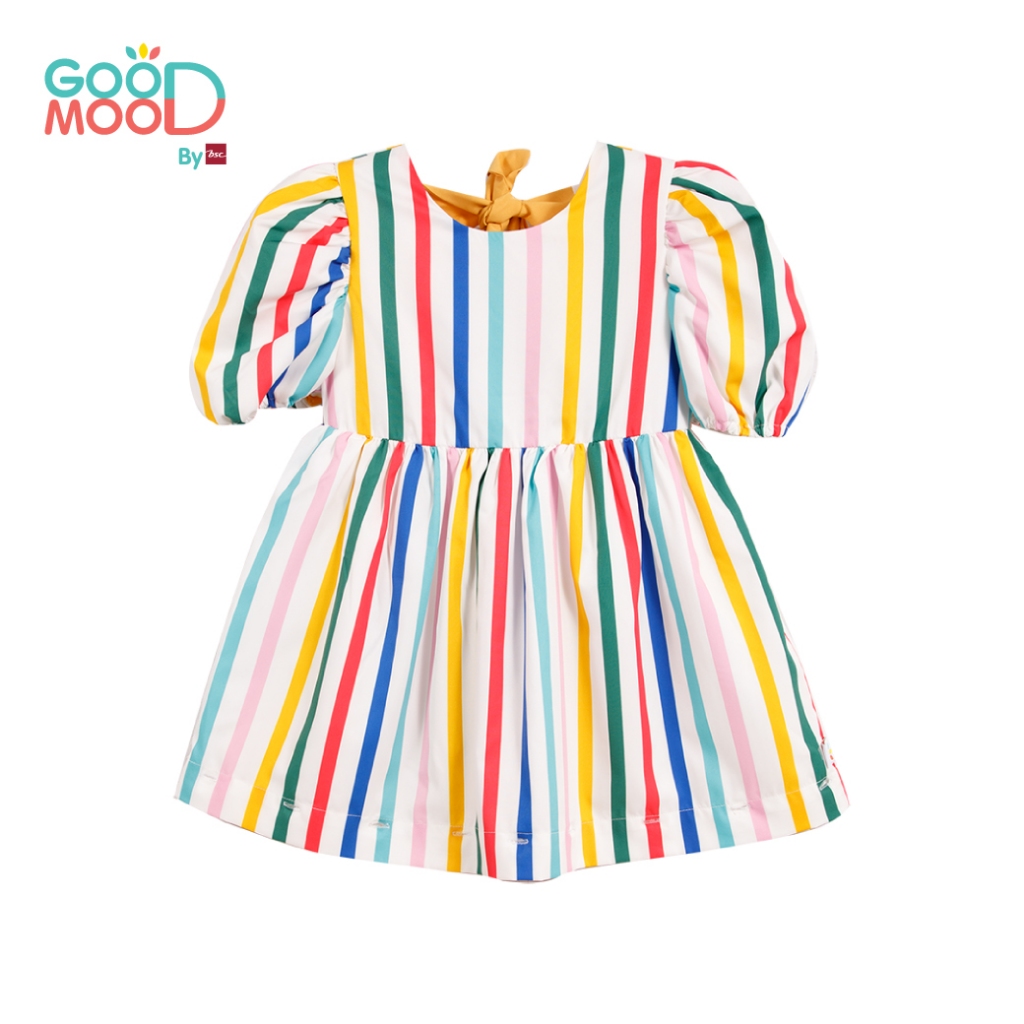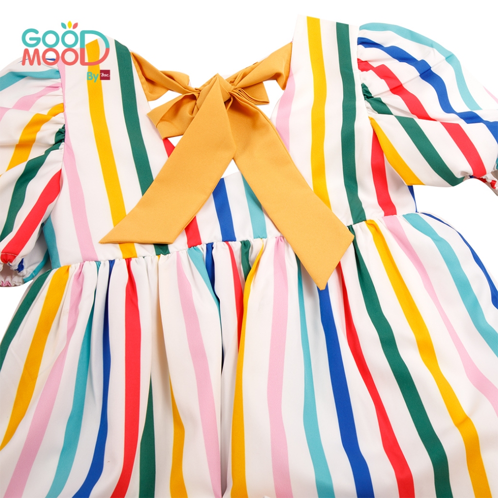 Good Mood by bsc ชุดกระโปรง สีแฟนซี พิมพ์ลายริ้วตรง+ชายกระโปรง สีเหลือง สำหรับเด็กอายุ 4-5 ปี ผ้าไหมอิตาลี่