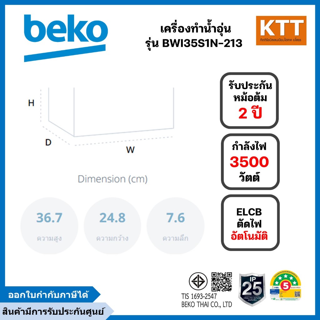 BEKO เครื่องทำน้ำอุ่น 3500 วัตต์ รุ่น BWI 35S1N-213 พร้อมส่ง