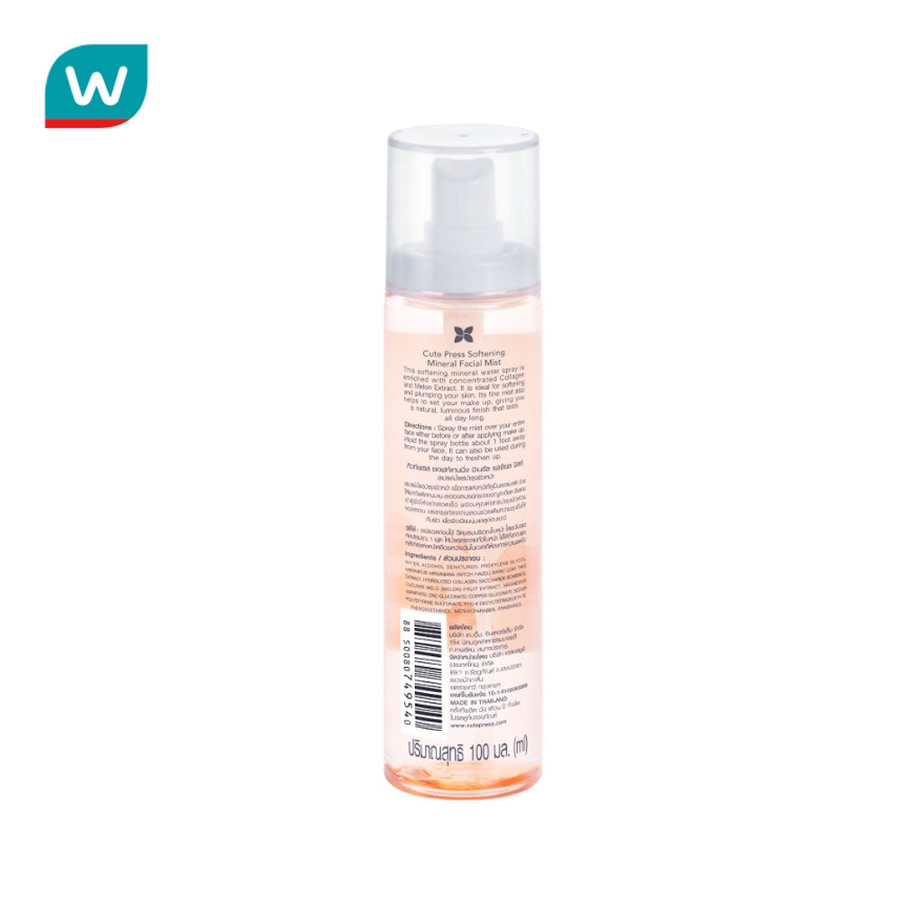 Cute Press คิวท์เพรส ซอฟท์เทนนิ่ง มิเนรัล เฟเชียล มิสท์ 100 มล.