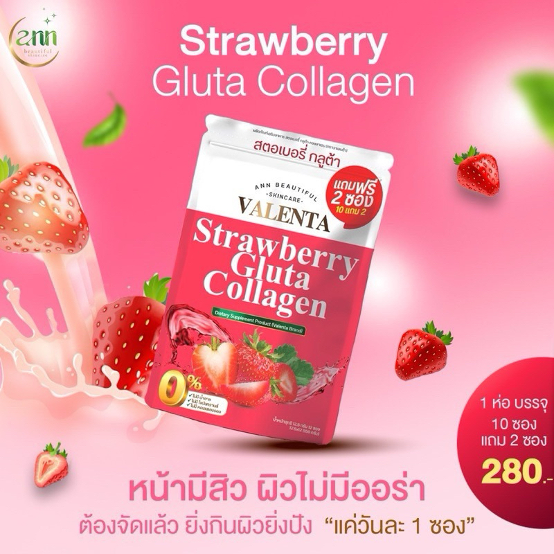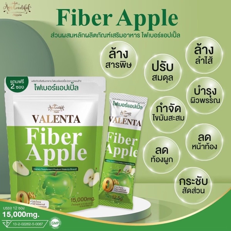 ไฟเบอร์ แอปเปิ้ล วาเลนต้า Valenta Fiber Apple& Valenta Gluta Strawberry วาเลนต้า สตอเบอรี่ 1 ห่อมี 12 ซอง