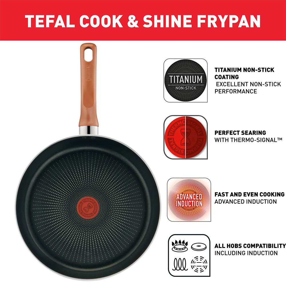 Tefal เซ็ตเครื่องครัว กระทะ 3 ชิ้น COOK & SHINE ก้นอินดักชั่น รุ่น G808S395