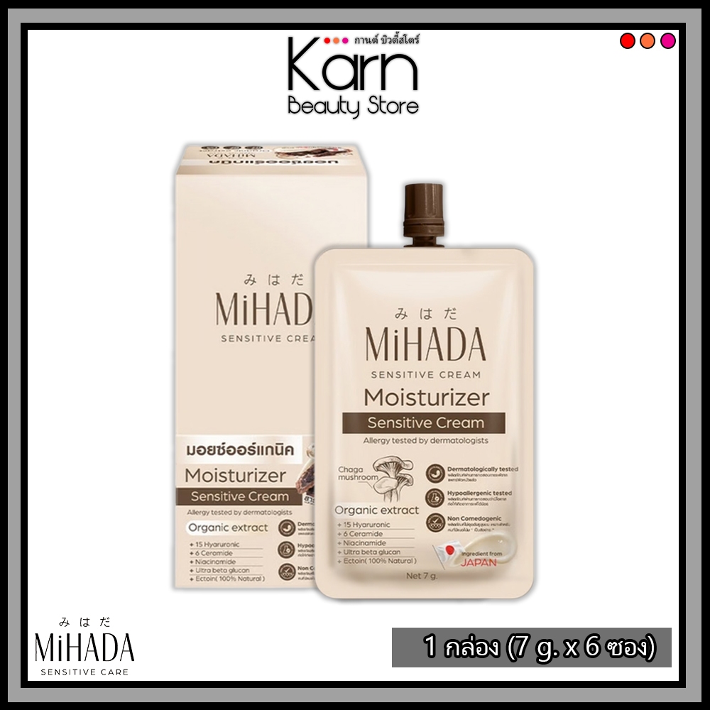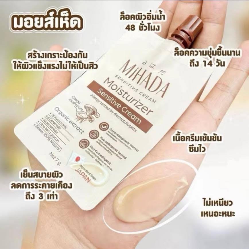 (กล่อง/6ซอง) MIHADA Moisturizer Sensitive Cream มิฮาดะ มอยเจอร์ไรเซอร์ เซนซีทีฟ ครีม (7 g. x 6 ซอง) #มอยซ์เห็ด