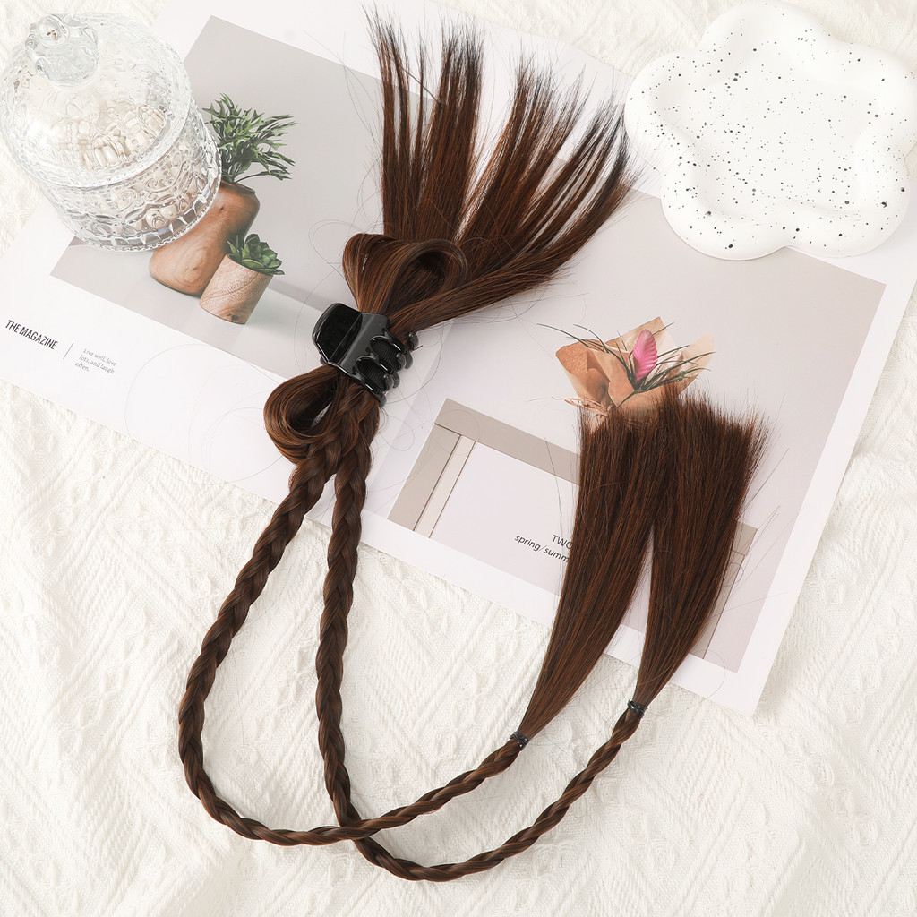วิกผมถักเปียผมหางม ้ าคู ่ คลิปโบว ์ สาวน ่ ารักมวย Braid ครึ ่ งผูกคว ้ าคลิปจําลองอุปกรณ ์ เสริมผม