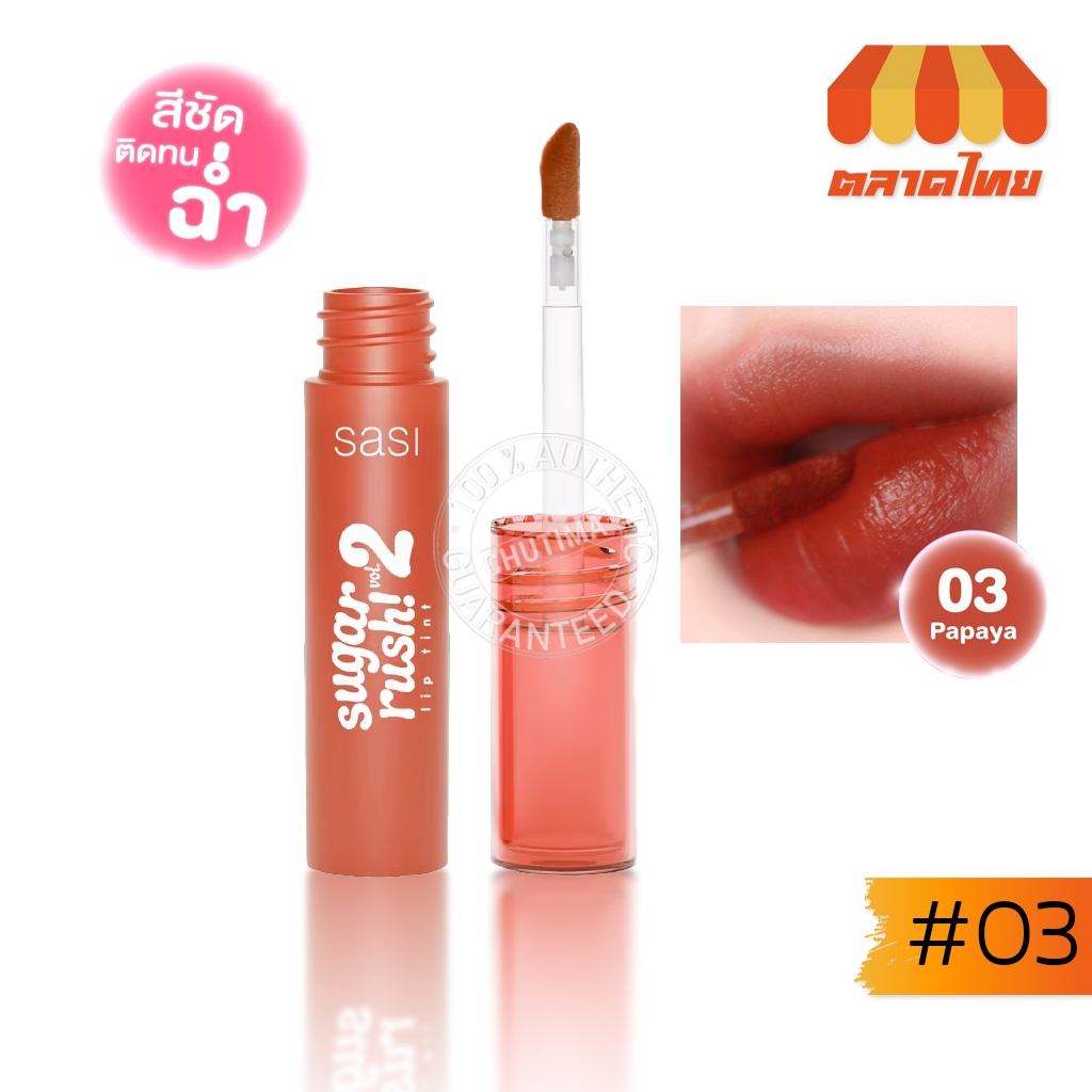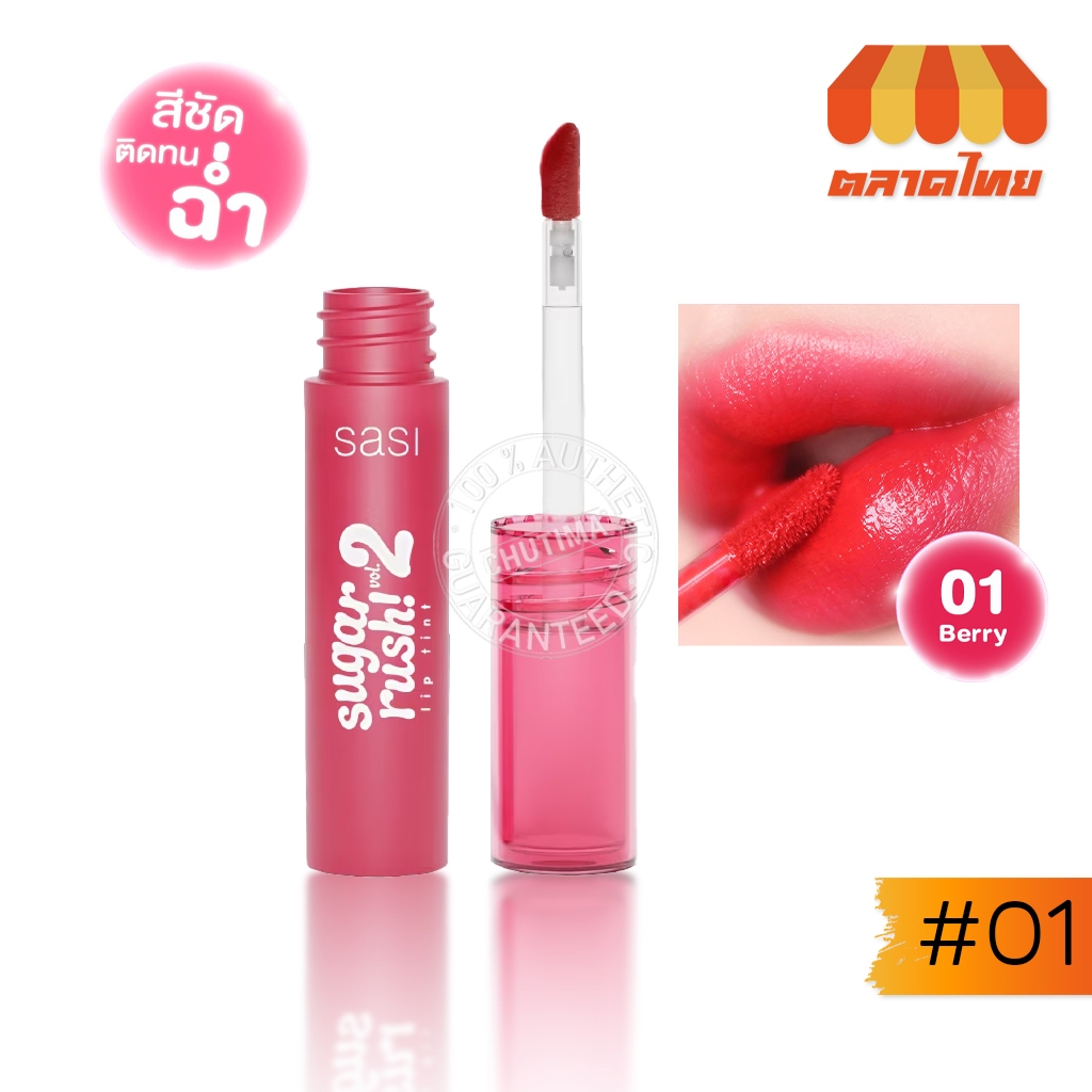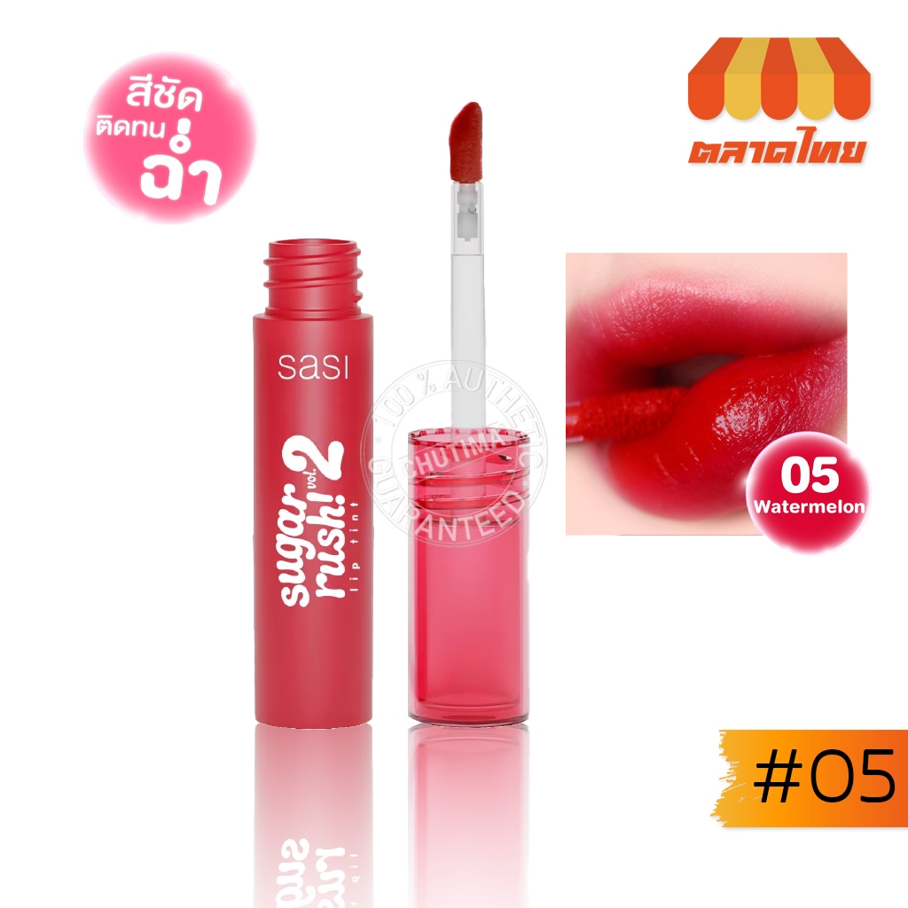 ลิปจิ้มจุ่ม ศศิ ชูการ์ รัช ลิปทินท์ ปากฉ่ำวาว ติดทน Sasi Sugar rush Lip Tint Vol. 2 2 g.