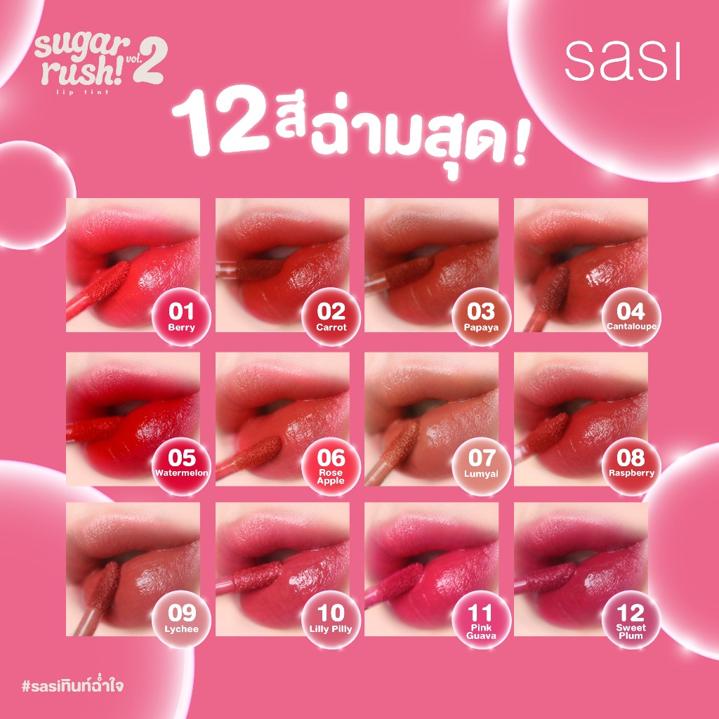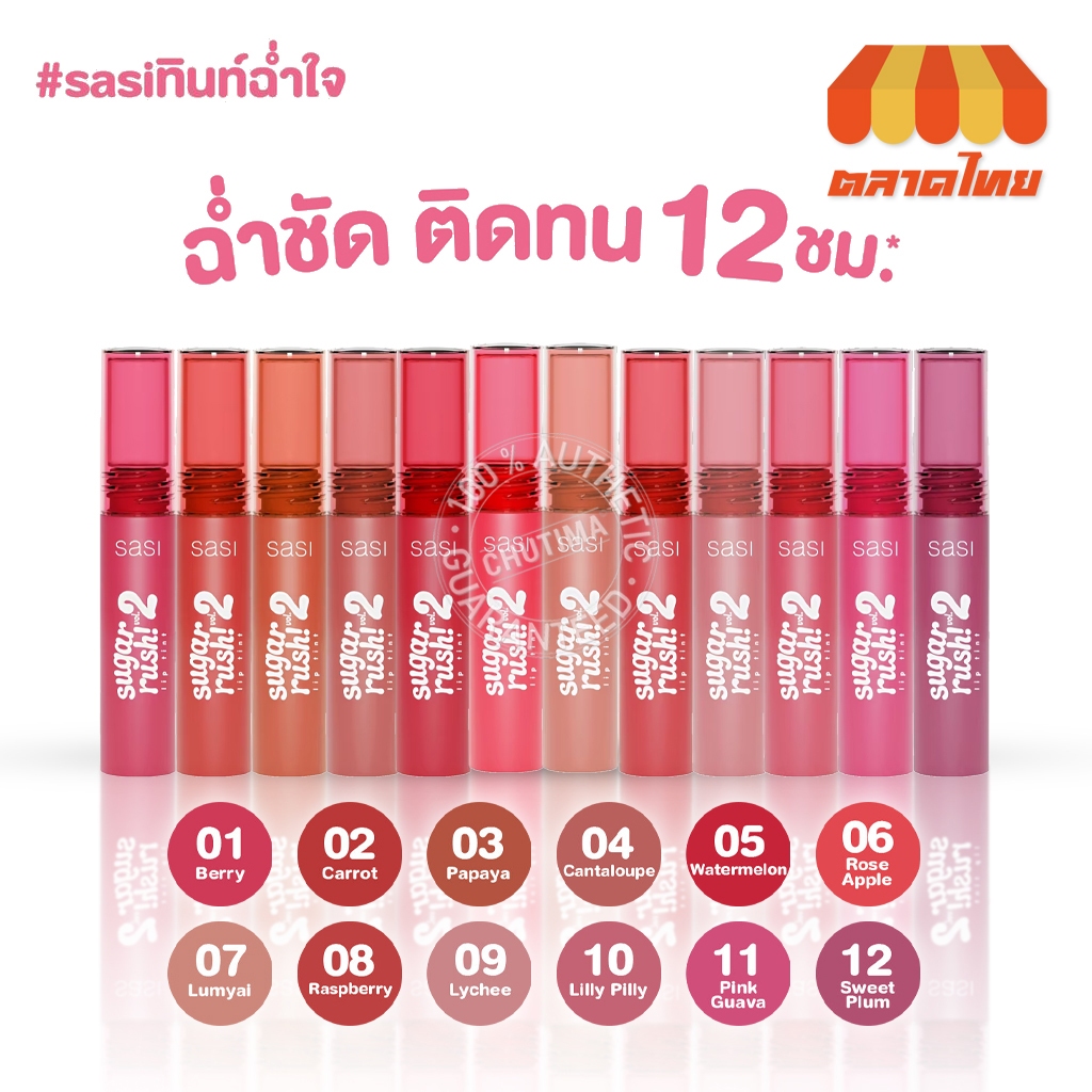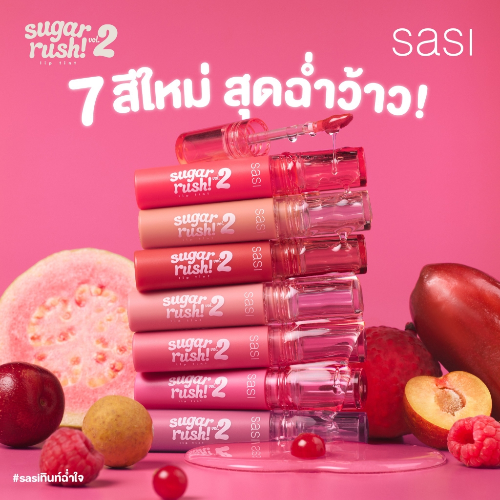 ลิปจิ้มจุ่ม ศศิ ชูการ์ รัช ลิปทินท์ ปากฉ่ำวาว ติดทน Sasi Sugar rush Lip Tint Vol. 2 2 g.