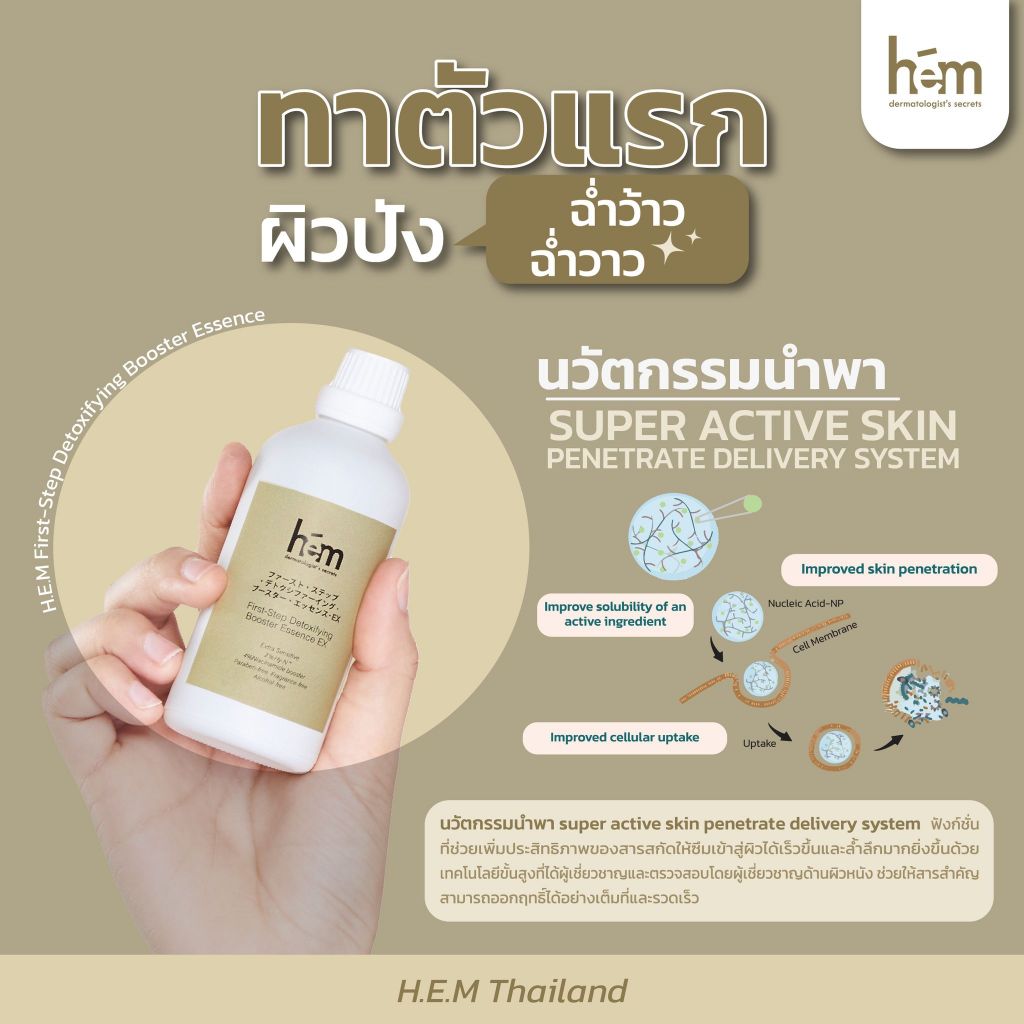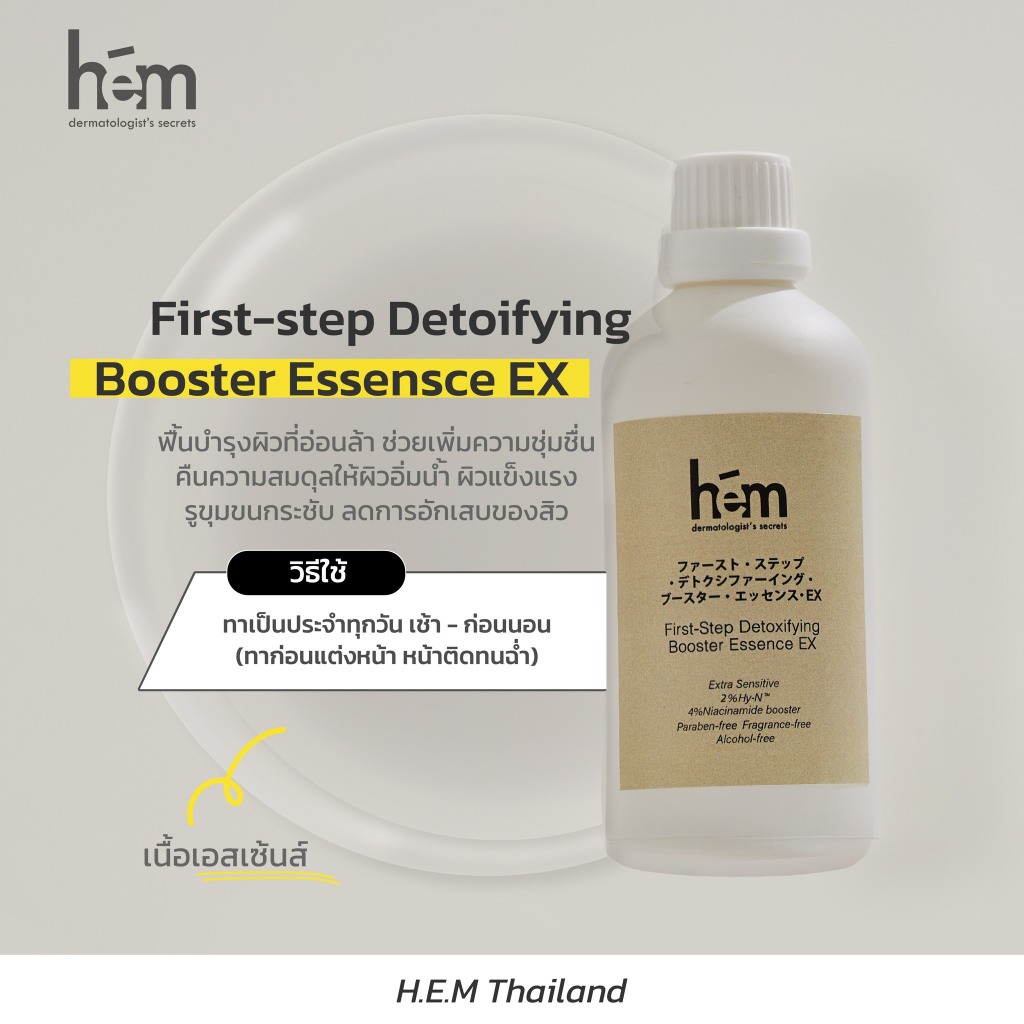 [มีโค้ดลด 20.-] H.E.M first-step Detoxifying booster Essence Ex (100ml) น้ำตบผิวแพ้ง่าย